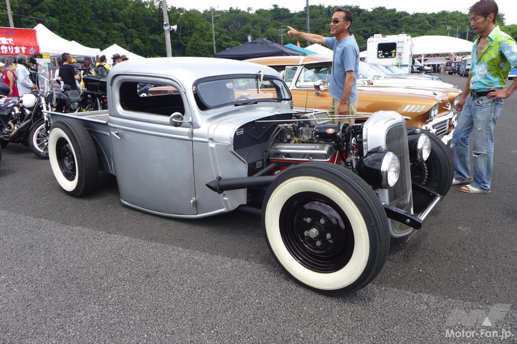 開場とともに展示エリアに続々と入ってきたマシンは、HOTROD(ホットロッド)あり、マッスルカーあり、LOW RIDERありと個性豊か。それらを見て回るだけでも楽しいのだが、同時にライブやステージイベント、本コース上のイベントも開催されるので、IAFの会場のその広さも相まってすべてを見て回るのが難しいほどだ。