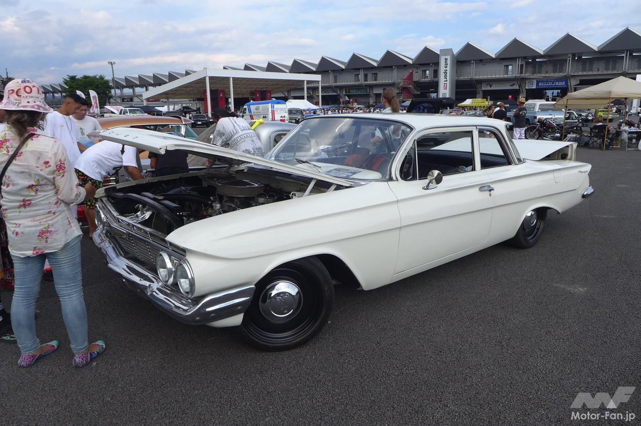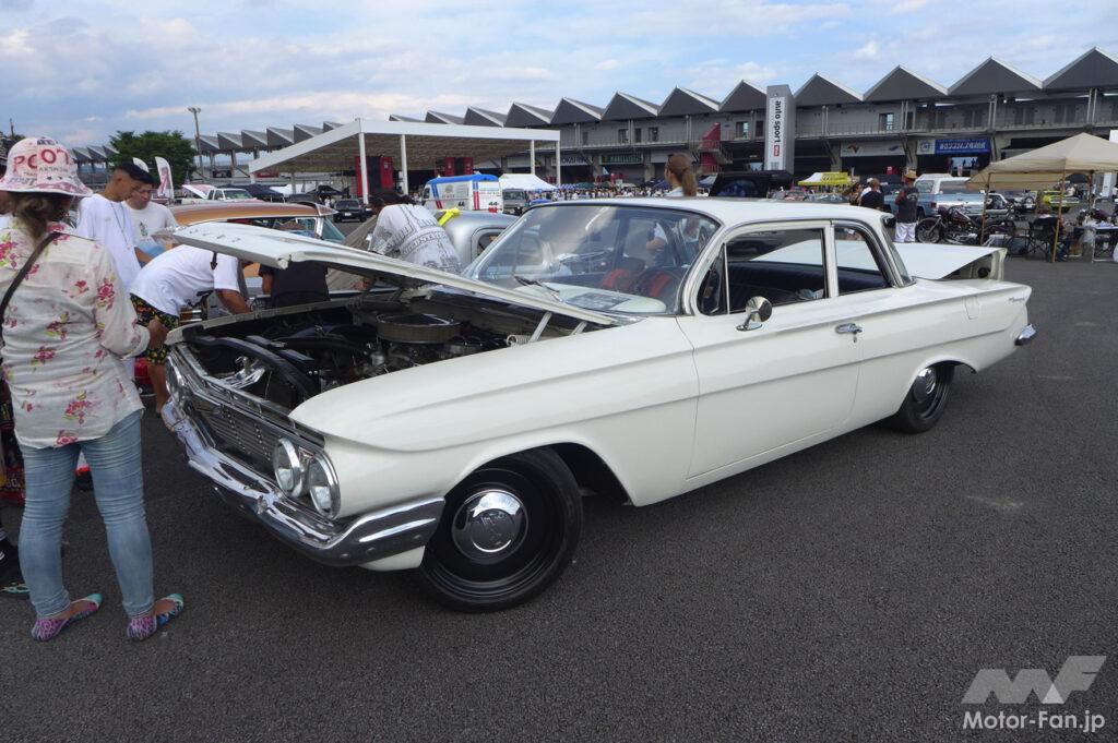 1961年型シボレー・ビスケイン2ドアセダン。インパラやベルエアなどの上級グレードが多い中で、エントリーグレードのビスケインは珍しい。ビスケインより下の最廉価グレードとしてビスケイン・フリートマスターが存在するが、こちらはわずか3000台(2ドアはさらに少なく138台)しか生産されず、日本ではまずお目にかかることはない。
