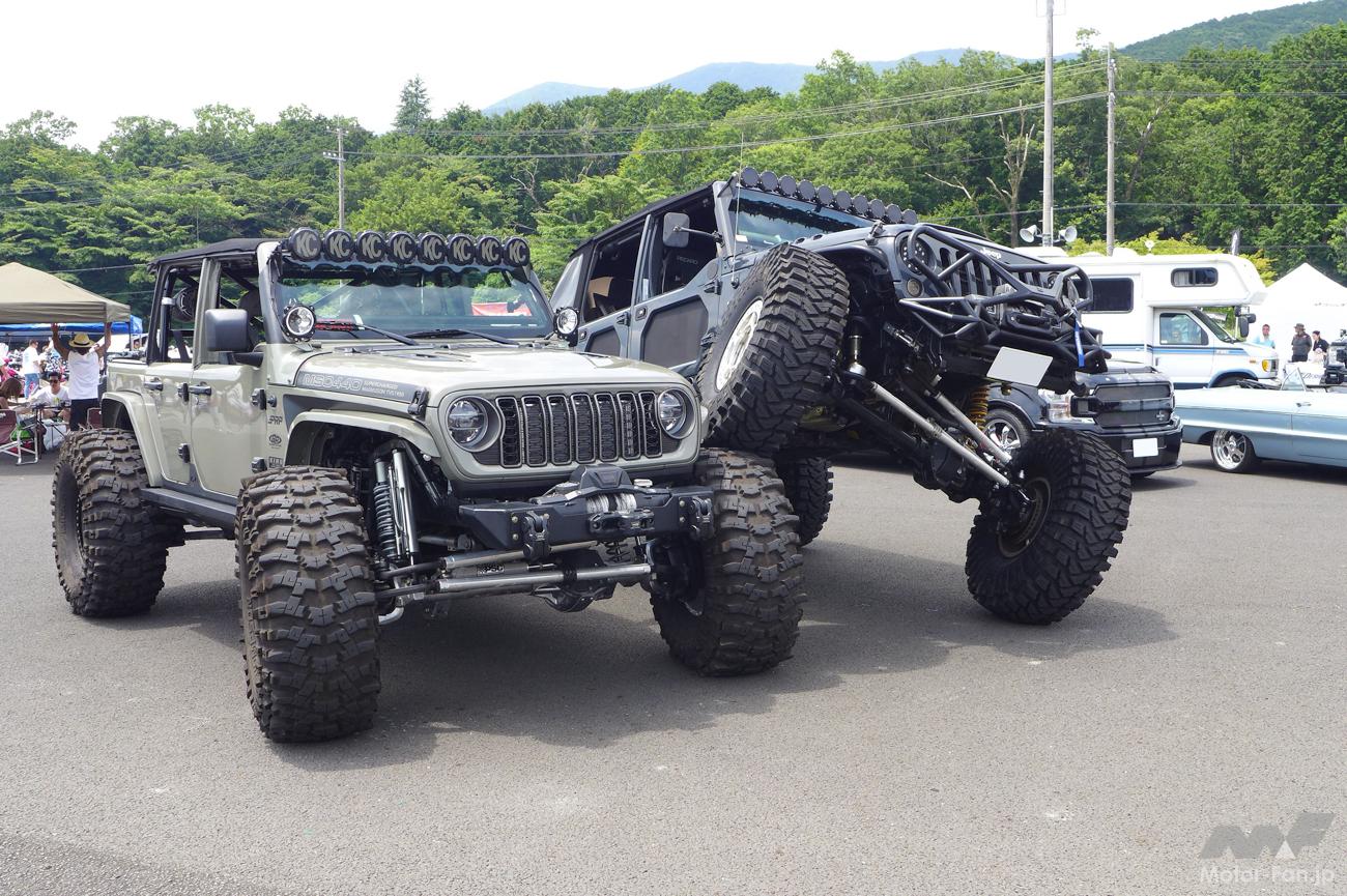JL型ジープ・ラングラー・アンリミテッドのカスタムマシン。ジープの左前輪にもう1台のジープの右前輪が乗るパフォーマンスはIKURAちゃんもMCで言及して笑っていた。