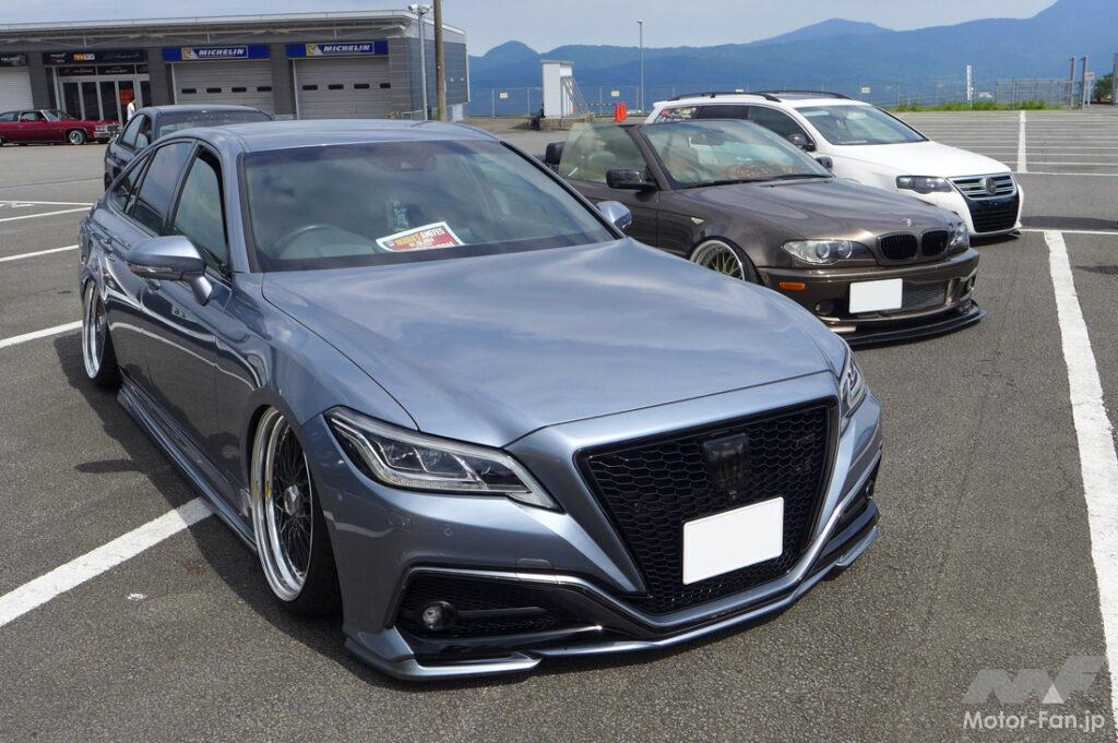 こちらはスタンス系カスタムの展示スペース。スタンス系とは車高を限界までローダウンし、タイヤ&ホイールとフェンダーをツライチにし、タイヤが明らかにハの字を書くほどネガティブキャンバーを付けた鬼キャン仕様のこと。ベース車は日本車あり、欧州車あり、アメ車ありとさまざま。