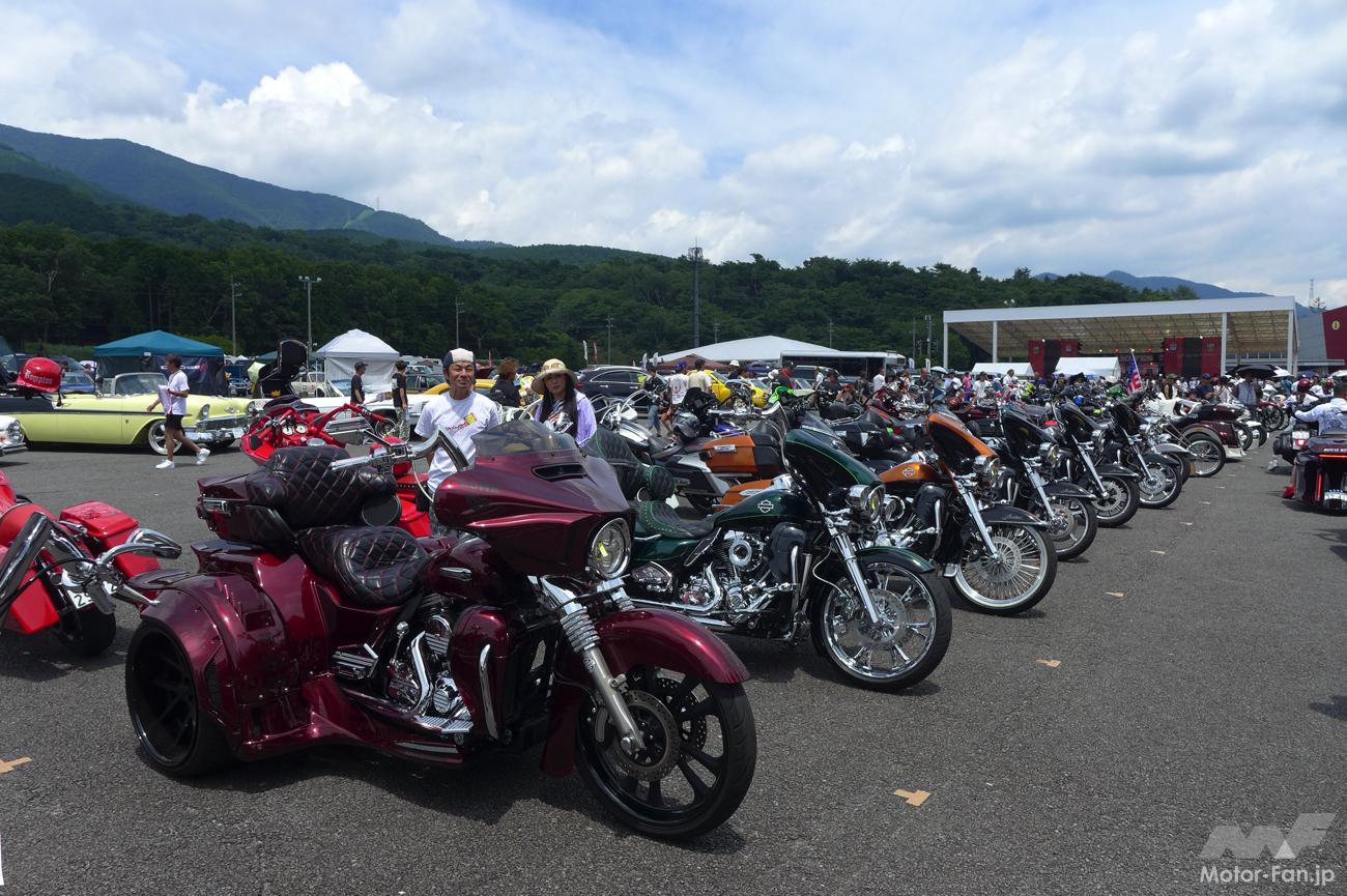 こちらの写真はハーレーのパレードランで、カワサキZシリーズと同じく車列を率いるのはIKURAちゃんと岩城滉一さん。ほかにもLOW RIDER(ローライダー)など四輪車のパレードランも開催された。