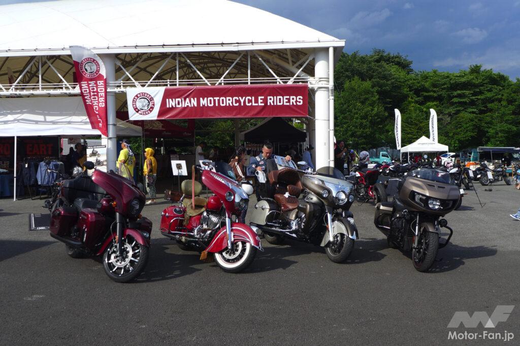 インディアンは正規インポーターのポラリスジャパンとIAFとのコラボが実現。オーナー&ファン向けイベント『INDIAN RIDERS DAY JAPAN』を公式プログラムとして開催。IMR(インディアンモーターサイクルライダーズ)メンバーを対象にパレードランや、ニューモデル試乗会、木下真輔氏による迫力満点のFTRエクストリームライドなどが行われた。