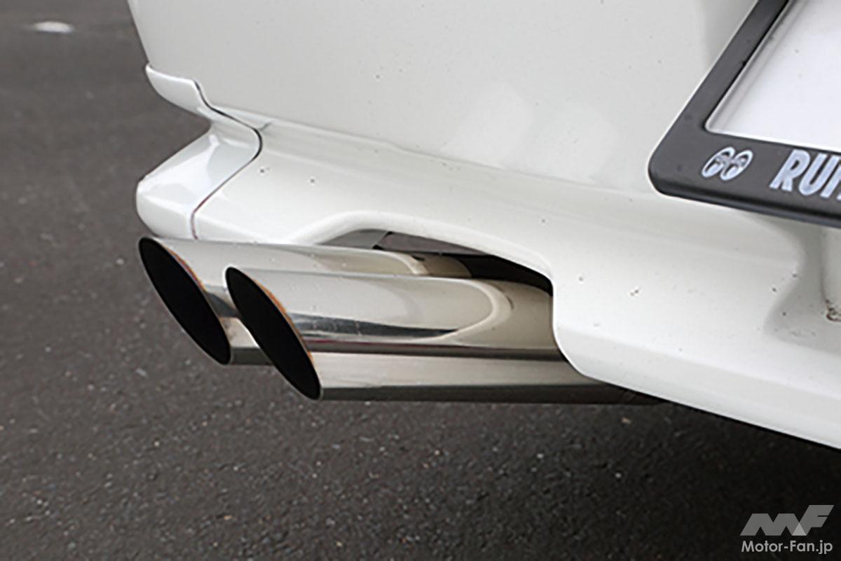 自慢のマフラーはメインが50Φフルデュアルで出口は60ΦW出しとなるワンオフ仕様