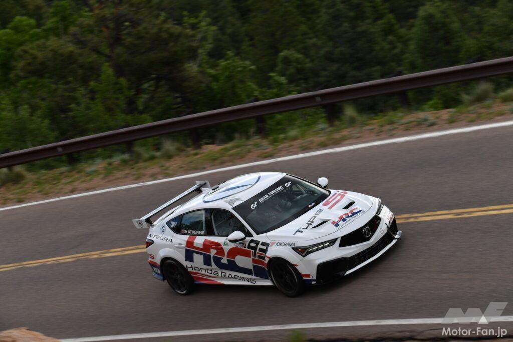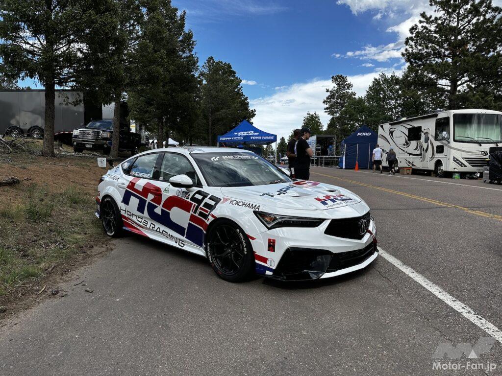 今年のパイクス・ピークでインテグラをドライブしたのは、キャサリン・レッジ選手。インディカー・シリーズにも参戦している女性ドライバーだ。タイムは10分51秒359。総合27位・クラス(タイムアタック1)5位だった。レース後に話を聞いた。コースについては、「ガードレールのないブラインドコーナーでは、約900の高さから落ちて死ぬことがあるんです。もちろん怖いです。でもビデオを見て、何度か走ったからマシになったかな。インテグラで初めて走った時は、怖かったです」と答えてくれた。