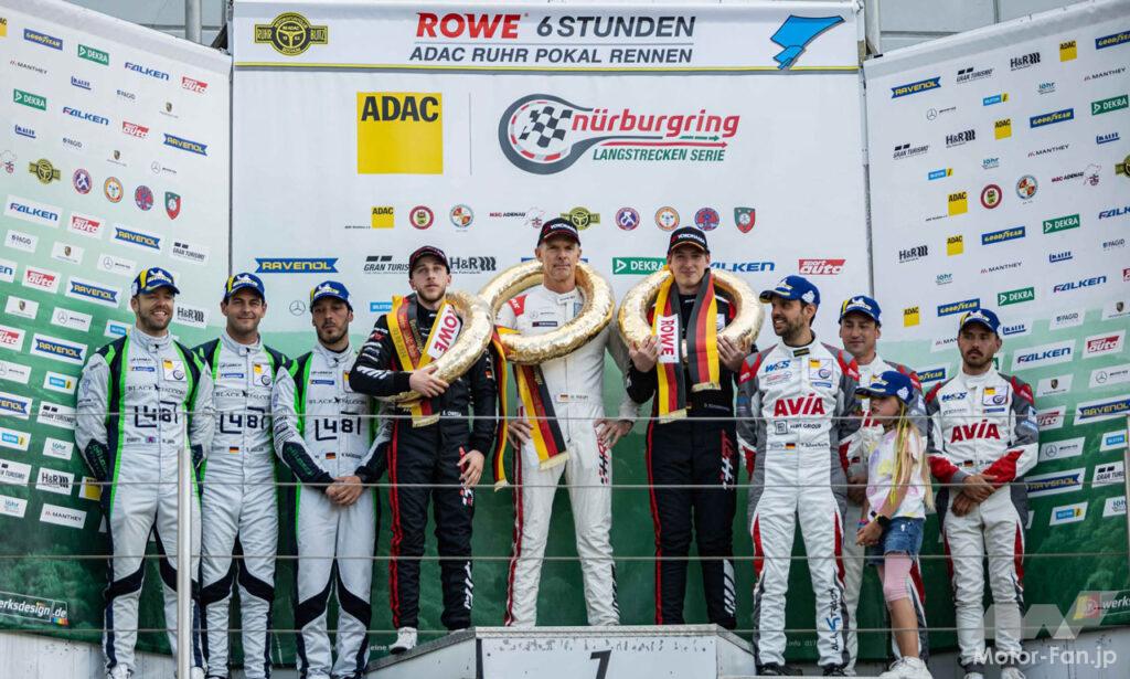 第4戦で総合優勝したのは、最高峰クラスのSP9 Proから参戦した「Team ADVAN×HRT」の9号車「メルセデスAMG GT3(サルマン・オウェガ選手/デビッド・シューマッハ選手/フーバート・ハウプト選手)」。予選3位で迎えた決勝は、レース開始早々に雨によるアクシデントにより2時間近くレースが中断。再開後は首位でスタートし、その後にペナルティを受けて順位を落とすも10周を終えた時点で再度トップに立つとそのまま独走を続け、2位に約3分半の大差をつけてチェッカーフラッグを受けた。