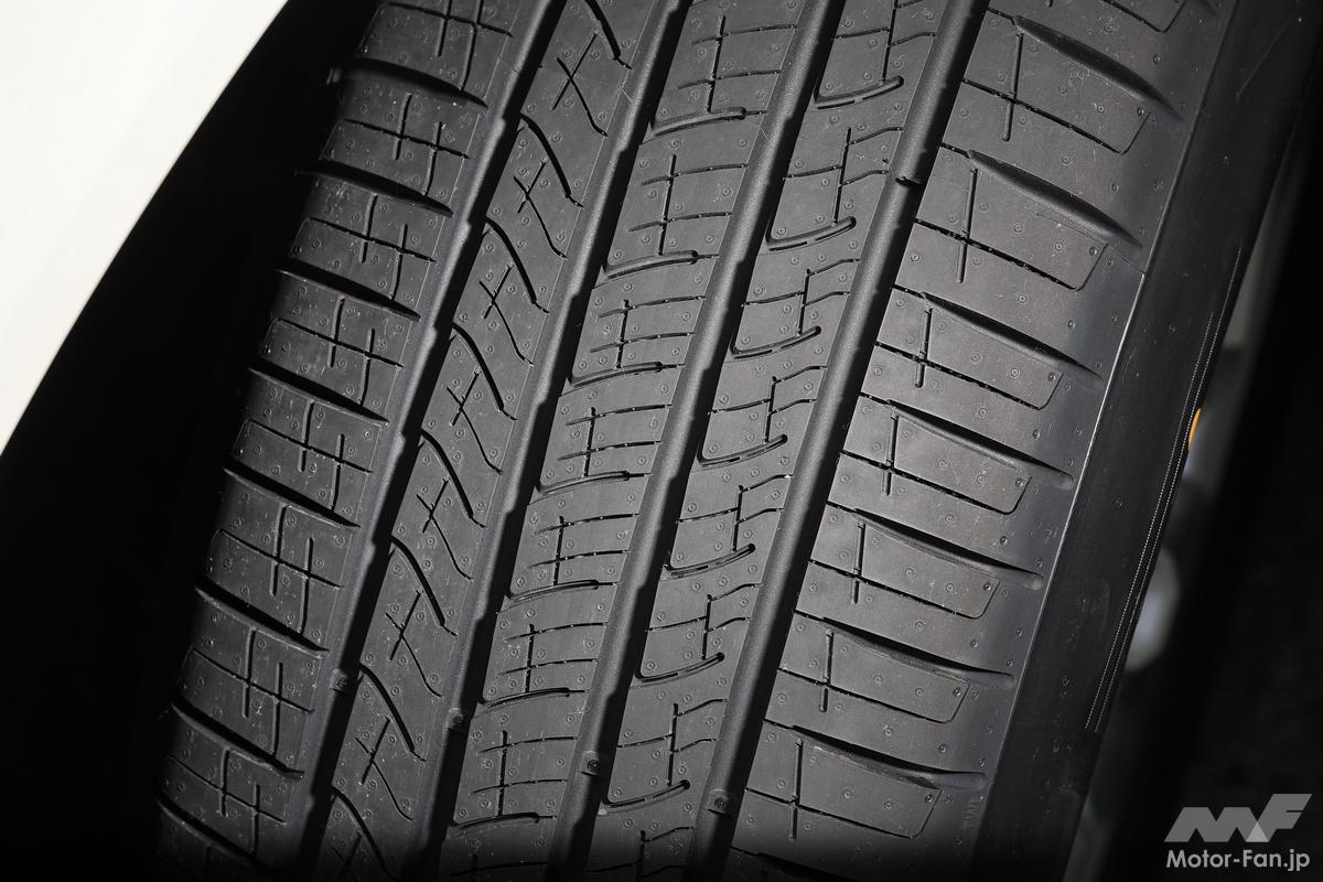 また、ピレリ自慢のバーチャルシュミレーション技術によって生まれた可変ピッチ配列のトレッドパターンは、溝の角度や深さを変化させることで、空気が圧縮される際に生まれる音の発生を最小限にとどめているという。確かに、速度を上げていっても音の変化が少なく、街乗りでの静粛性の高さが、そのまま高速域まで続く。