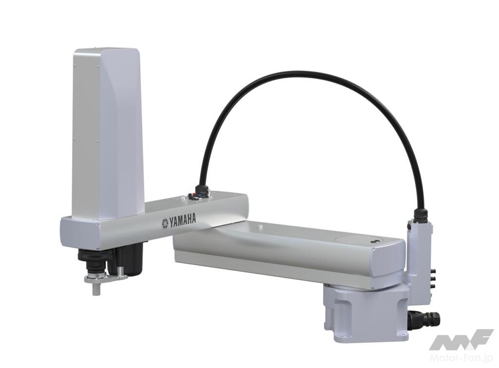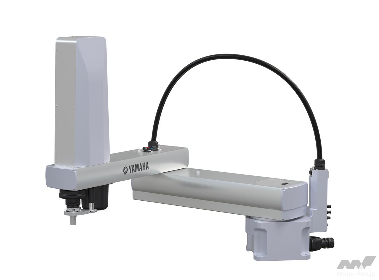重量物の搬送に最適なアーム長と剛性を持つ大型スカラロボット。オフセットされたワーク(作業物)の搬送も可能だ。従来の垂直多関節ロボットよりも低コストで自動化に貢献する。
