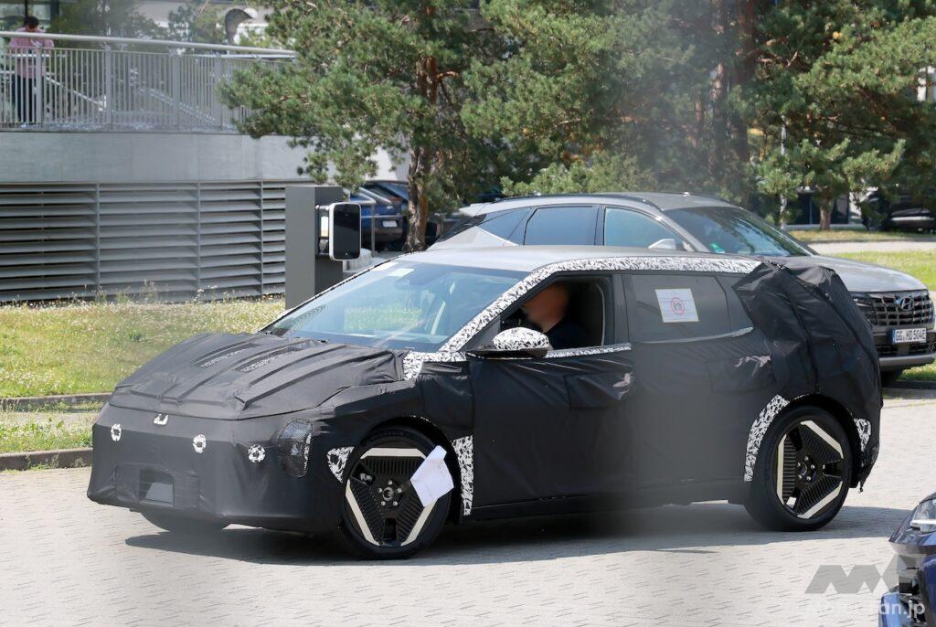 そのスタイルとは、ハッチバックにクロスオーバーのテイストを融合させたネオ・ハッチバックで、これまでスクープしてきた「EV6」のベイビー版を彷彿させる。