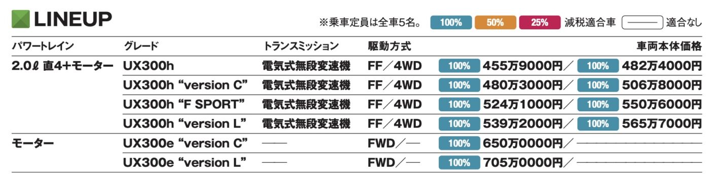 WLTCモード燃費 26.3km/l ※「UX300h」系「F SPORT」を除く)のFF車