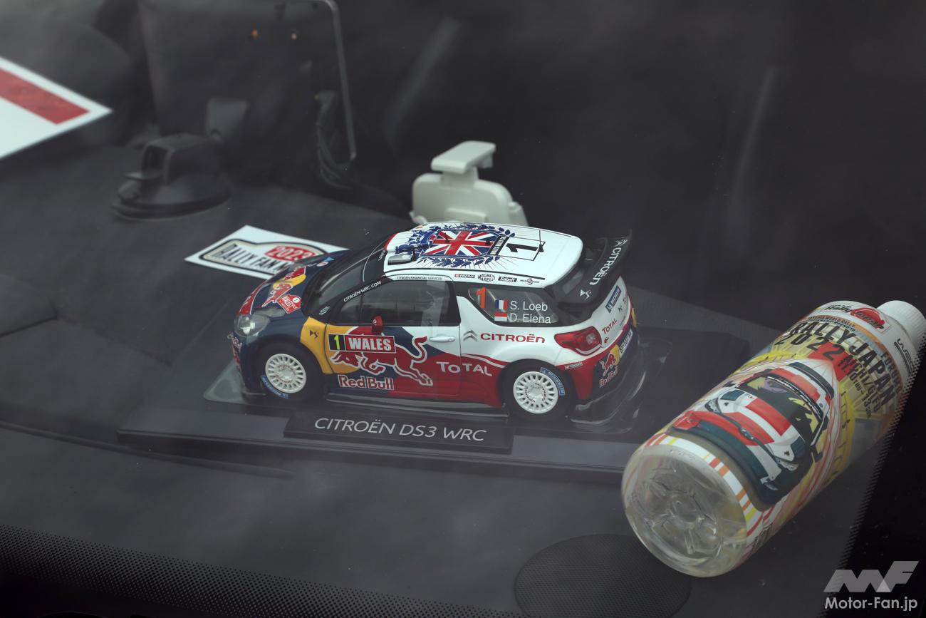 車内にはシトロエンDS3 WRCウェールズラリー・グレートブリテンRedBullのカーナンバー1(セバスチャン・ローブ/ダニエル・エレナ)のミニカーも。