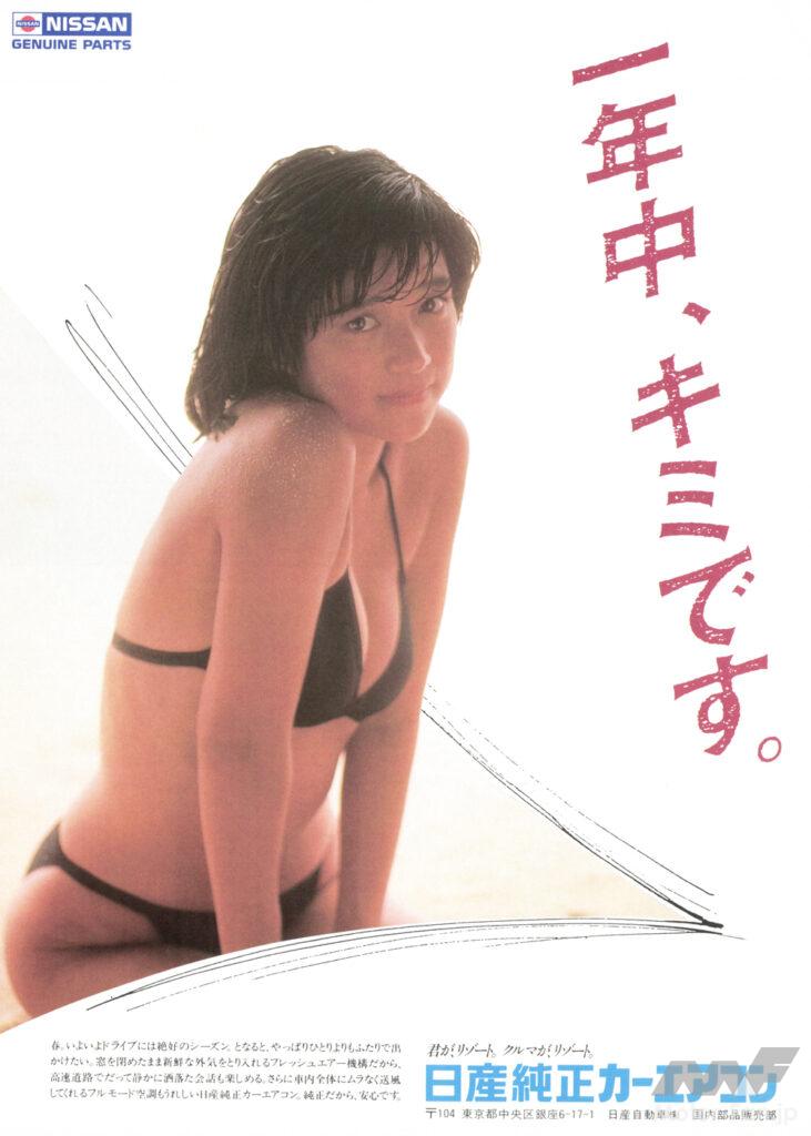 こちらは1987年日産エアコン広告。3年前と異なり、日本人女性にチェンジしている。エアコンの広告で水着姿を披露している割に4月の出稿。