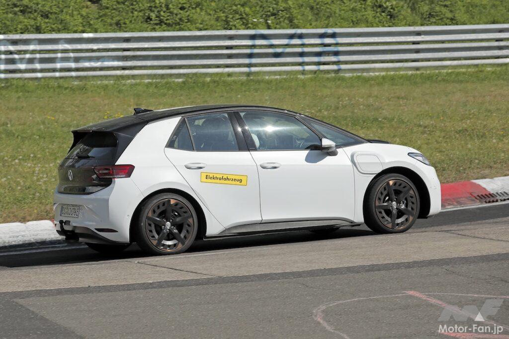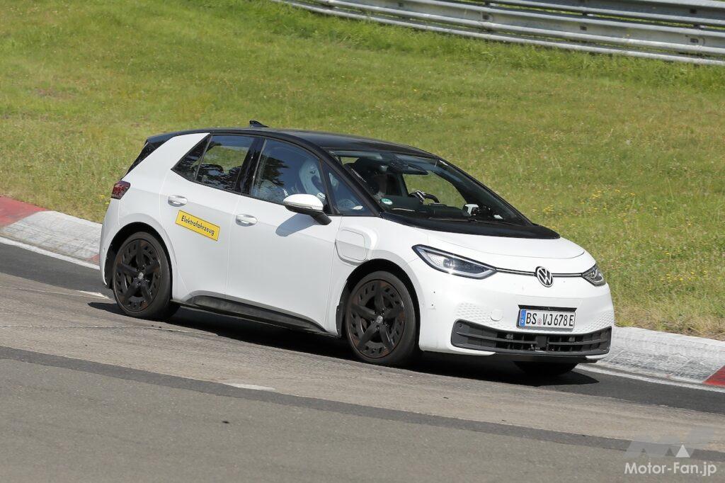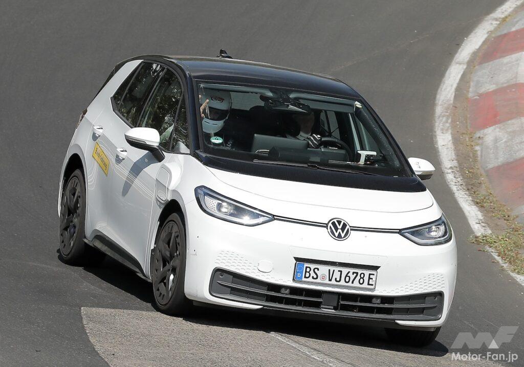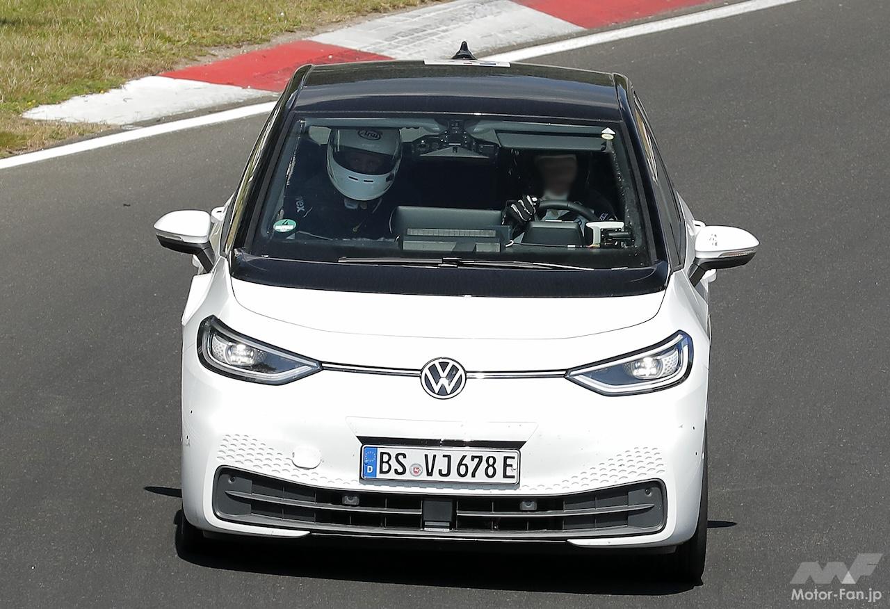ニュルブルクリンクで捉えたプロトタイプは、兄貴分「ID.3」のボディをまとったテストミュールだが、ホイールベースは短く、それに伴い後部ドアも短く処理されている。最大の注目は充電ポート位置で、ID.3が助手席側リアフェンダーにあるのに対し、このプロトタイプは助手席側フロントフェンダーに配置されている。