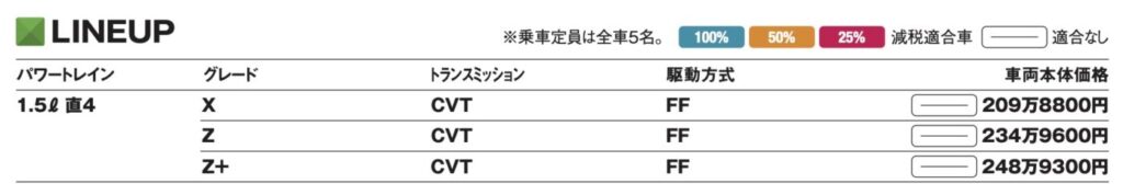1.5ℓ自然吸気に絞り込み 全車200万円台の価格設定