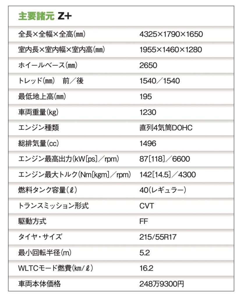 グレード体系は、16インチスチールホイールを履くエントリーの「X」と、17インチアルミホイールやLEDフォグライトが標準装備される上級の「Z」、「Z」にデコレーションを加えた「Z+」という3タイプのシンプルな構成となっている。思えばこれぐらいのサイズと価格帯でこうしたキャラクターのクルマというのはあまりない。車格が近い同門のヴェゼルとは、いろいろ違うからこそ意味がある。幅広い層に受け入れられそうな魅力的な選択肢が増えたことを歓迎したい。