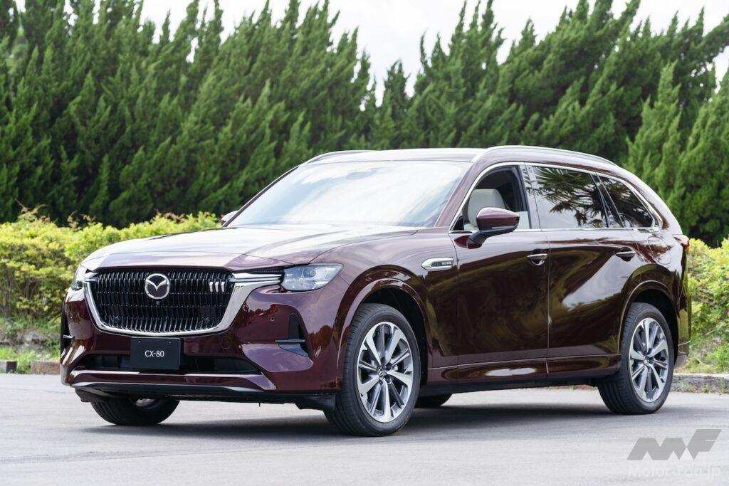 マツダはCX-80の日本仕様を公開した。販売開始は2024年秋を予定している。3列シートSUVのCX-80は、縦置きパワートレーンを搭載するラージ商品群に属する。国内では2022年に2列シートSUVのCX-60がデビューしている。そのCX-60に対し、より上級志向で使い勝手の高いモデルの位置付けがCX-80だ。