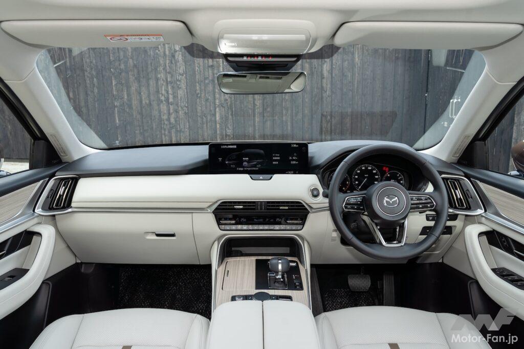 インテリアは「乗員全員が快適に過ごすことができる使い勝手と居住性」をテーマに開発が行なわれた。前席の空間とトリムはCX-60と共通だ。エクステリアに新しいボディカラーを設定したように、インテリアにも初モノを適用したほうが新規性や新鮮味を表現できるが、「フラッグシップのCX-80に入れても恥ずかしくないものを最初から開発している。分けて開発していたらあれだけ上質なものは作れていなかった」と開発者。いいものを出し惜しみせず、CX-60から投入していたということだ。