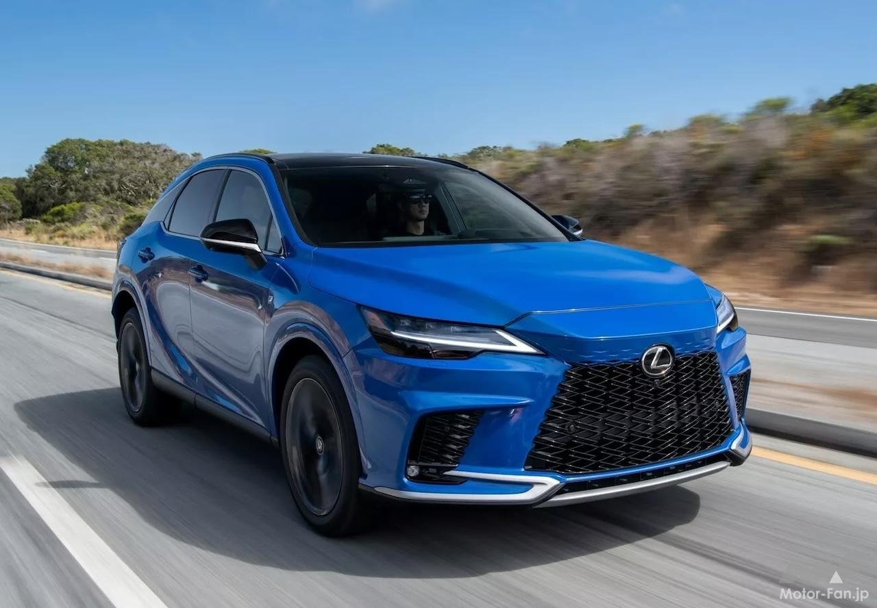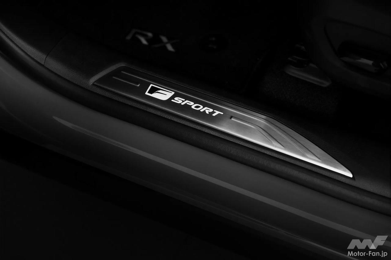 エンジンラインナップは、最高出力279ps、最大トルク429Nmを発揮する2.4リットル直列4気筒ターボ搭載「RX 350」、最高出力249ps、最大トルク316Nmを発揮する2.5リットル直列4気筒+モーター搭載「RX 350h」、最高出力371ps、最大トルク550Nmを発揮する「RX 500hスポーツパフォーマンス」、最高出力309psを発揮する2.5リットル直列4気筒に3つの電気モーター、18.1kWhのリチウムイオンバッテリーを搭載する「RX 450h+」などがラインナップされる。PHEVの電気のみの航続は35マイル(56 km)となっている。
