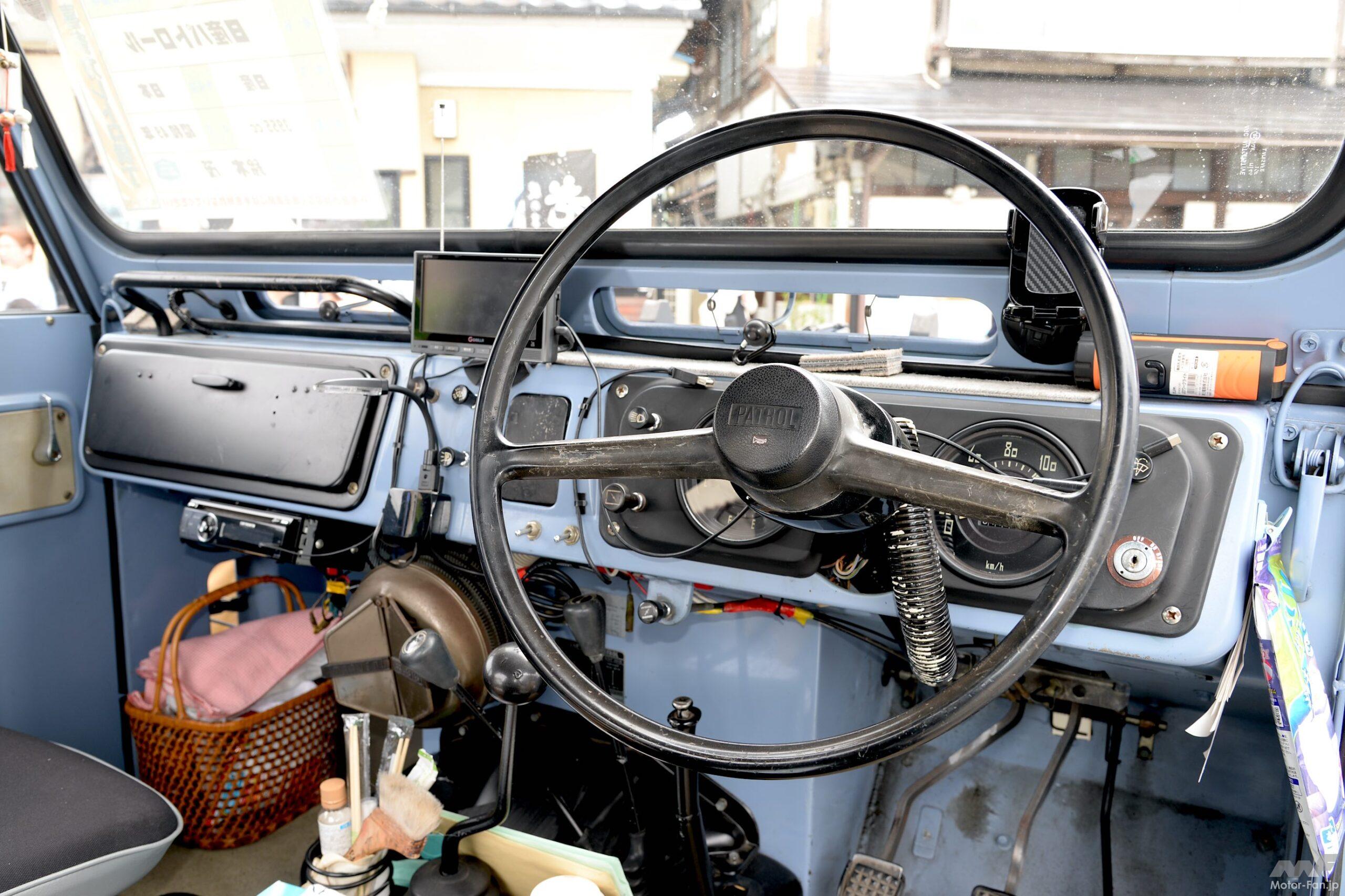 ところが福島県喜多方市で開催された夏祭りである「喜多方レトロ横丁」でパトロールの姿を見つけた。迷わずオーナーと思しき人へ声をかけたのは言うまでもない。もしや若い頃に消防団員だったのかと想像を膨らませていると、戻ってきた答えは意外なものだった。現在69歳になるオーナーの鈴木茂さんは、若い頃に電気工事の仕事をされていた。その時に仕事用のクルマとして用いられていたのがパトロールだったというのだ。