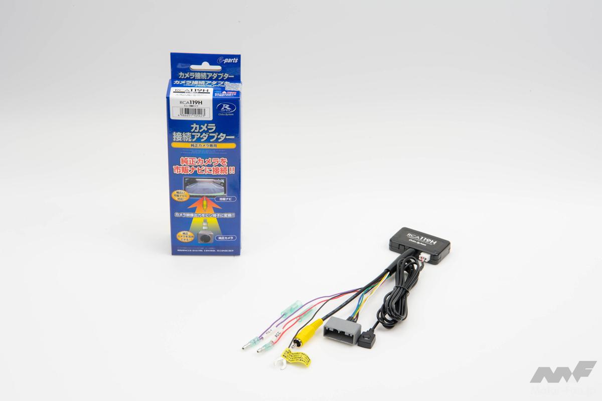 純正装備のアシストカメラを市販ナビやモニターに接続して映像を映すことができるアダプターなのだ。写真はリヤカメラ用『RCA』シリーズで、ほかにフロントカメラ用の『FCA』シリーズ、サイドカメラ用の『SCA』シリーズ、マルチカメラ対応の『MCA』シリーズをラインアップしている。