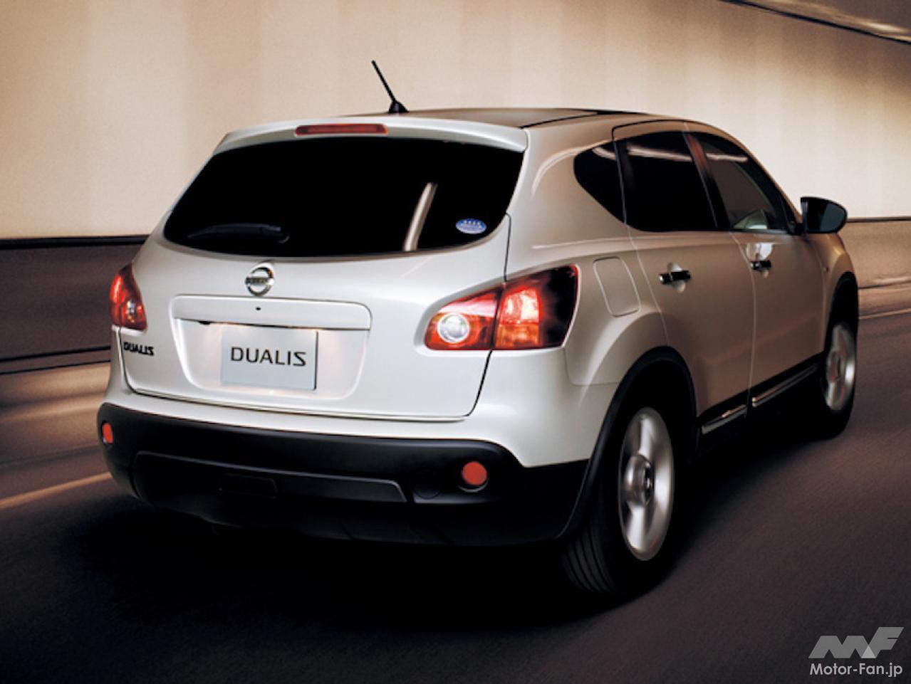 2007年に発売された日産デュアリスは、「スマート&コンパクトクルーザー」をコンセプトに、ヨーロッパの拠点を中心に開発した新しいミドルサイズクロスオーバーSUVだ。軽快かつコンパクトな上半身と、SUVらしいダイナミックさと安心感をもつ下半身を融合させた個性的なエクステリアデザインが印象的だ。また、走行条件のより厳しい欧州市場をターゲットにした開発が行われたことで、”走る”、”曲がる”、”止まる”といった走りの基本性能を高め、これまでのSUVとは一線を画すキビキビかつ安定した操舵性を実現させた。デュアリスは日本ではこのモデルのみで販売が終了してしまったが、欧州では「キャシュカイ(Qashqai)」というモデル名で非常に高い人気を誇るモデルだ。