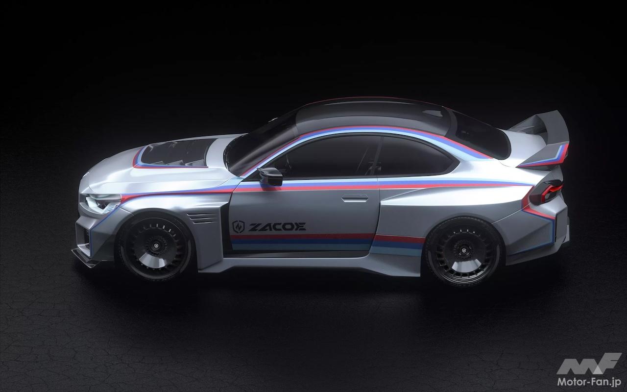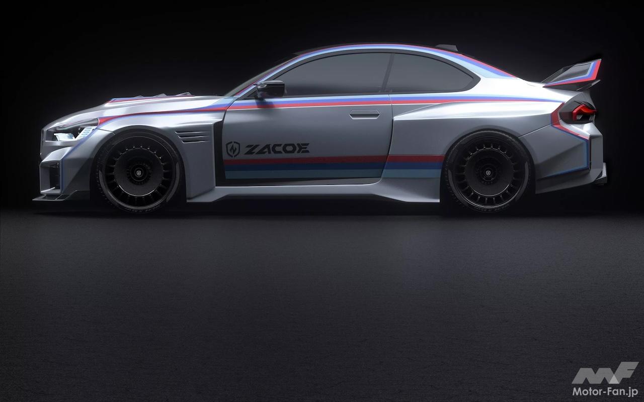 フェラーリ、ランボルギーニ、マクラーレンなどのスーパーカーのカスタマイズで知られるチューナーのZacoeは、現状では賛否両論あるG87型BMW M2のデザインの魅力を最大限に引き出すべく、かつてのDTM(ドイチェ・ツーレンワーゲン・マイスターシャフト=1995年までのドイツツーリングカー選手権)風のワイドボディキットを装備させた。クラシカルなBMW 初代M3 E30 EVO DTMを現代的にアレンジしたイメージで、最新のM2にさらなるアグレッシブさを注入している。