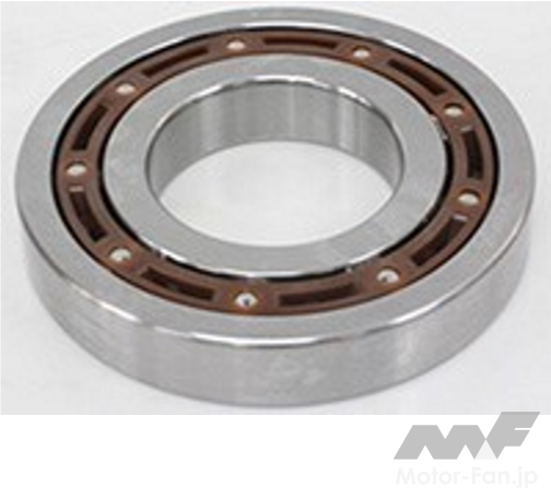 強度、耐久性といった軸受性能は従来品そのままに、軸受幅を極限まで狭める事に成功した。汎用サイズ(6207)への適用で、軸方向寸法5mm(約30%)の短縮、重量は73g(約26%)の低減を達成。これにより、同軸タイプや3軸タイプeAxleに搭載することでユニット長の短縮化を可能とする。