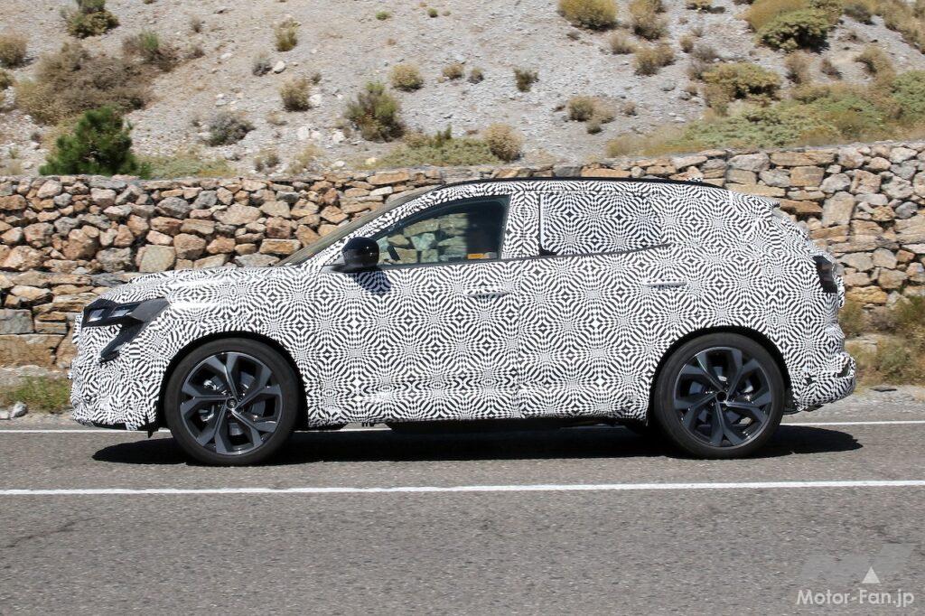 フロントエンドでは、ヘッドライトに接続されていたLEDデイタイムランニングライトが下部へ移動。「クリオ」「キャプチャー」「ラファール」のようなブーメラン型に新設計されている。またヘッドライト自体も形状、グラフィックが刷新されている。また、グリルはエッジの効いたシャープなアウトラインになり、ボンネットや、フロントクォーターパネル、下部エアインテークなど、すべてが新設計されるようだ。