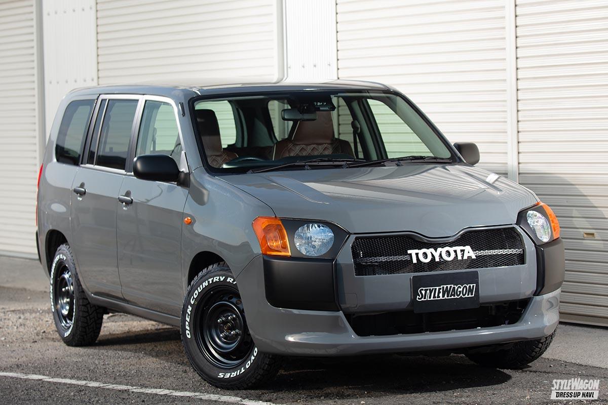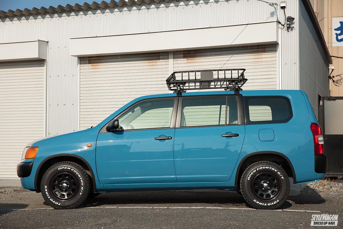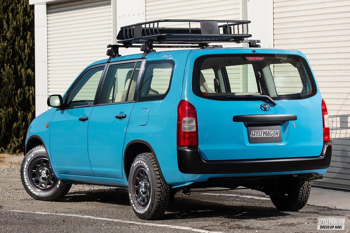明るいライトブルーとブラックのツートンで軽快な印象にまとめられたこのプロボックスは、クラシックスタイル専門店「グッドサン」が手がけたオリジナルのカスタム仕様だ。