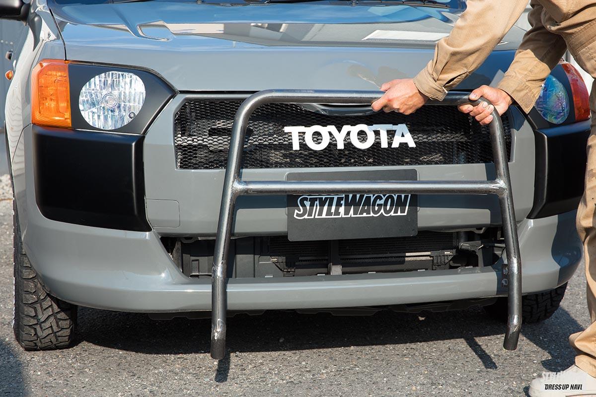 グッドサンでは160系プロボックス(H29年式GL)をベースにしたモデルも製作中。ボディカラーは現行ジムニーのグレーでオールペン。ヘッドライトはオレンジペイント+丸目風にラッピング。フロントグリルはワンオフで、現在グリルガードも製作中。内装は茶色系で落ち着いた雰囲気になる予定。こちらもYouTubeでチェックできる。