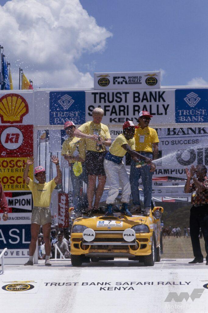 1993年のWRC(世界ラリー選手権)は絶対王者ランチアワークスが撤退。トヨタ、三菱、スバルの日本車3メーカーとフォードの4ワークスで争われていた。その第4戦サファリラリーは、ワークス参戦はトヨタが4台エントリーの必勝体制を敷く一方、他3ワークスはエントリーしなかったことから、トヨタが1-2-3-4位を独占。あわせて、ワークスセリカのハンドルを託された岩瀬晏弘選手が4位となり、当時のサファリラリー日本人最上位(これまでは1983年の高岡祥郎/スバルと1990年の篠塚健次郎/三菱の5位)を更新したラリーとして広く知られている。