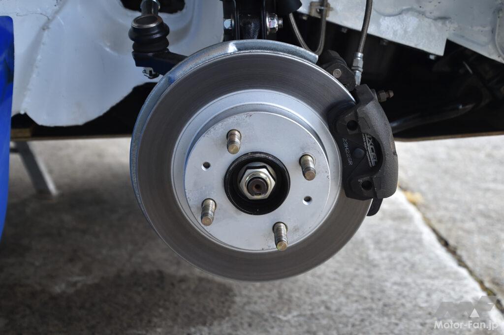 ブレーキはフロントがベンチレーテッドディスク、リヤがドラムという形式はノーマルと同様だが、ブレーキホースはオリジナルのステンメッシュ製に換装されている。