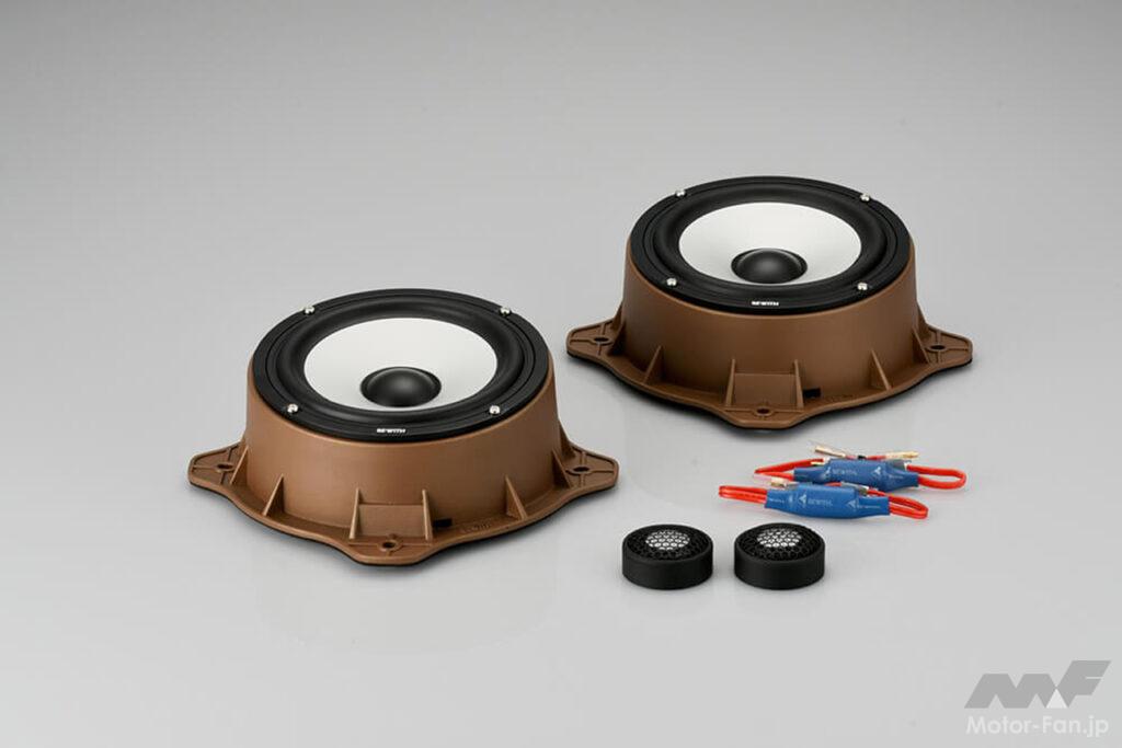 このサウンドシステムは、高性能セパレート2ウェイスピーカーシステムで、16.5cmのウーファー(前後計4基)と、2.5cmのトゥイーター(2基)を独自のAM(アルミ-マグネシウム)振動板で統一し、スムーズな音のつながりとクリアなサウンドを実現。さらにウーファーの取り付けには専用の高精度アルミダイキャスト製大型バッフルボードを採用。音の濁りや振動を抑え、豊かなサウンドで室内を満たしてくれる。