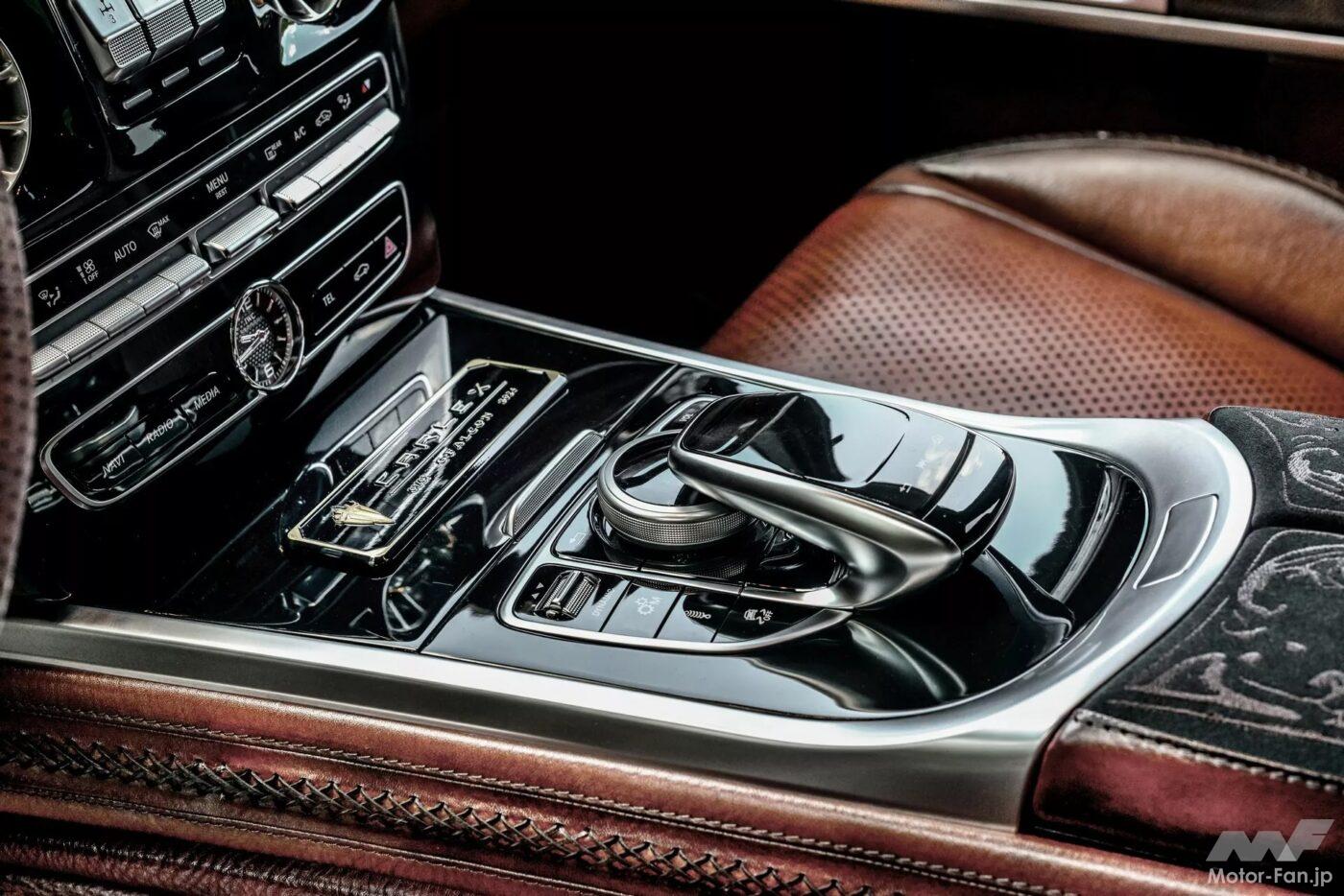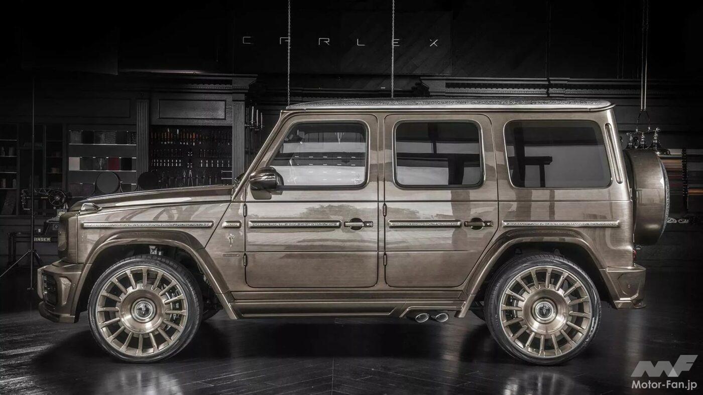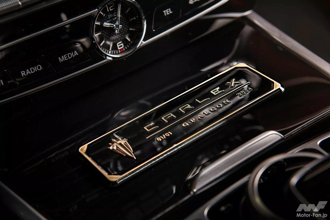 ふたつの企業とはCarlex DesignとVO Falconだ。カーレックスは、4年の製作期間を費やし、想像しうる最高の G クラスを作り上げたという。ルーフ全体に広がる手描きの彫刻も素晴らしいが、ダイヤモンドが散りばめられた、特別なメタリックブロンズシェードのボディも重厚で存在感がある。さらに改良されたフロントエンド、張り出したホイールアーチ、新設計されたロッカーパネル、特徴的なバンパーも見ることができる。また、カラーマッチしたホイールが4×4の神秘性を高め、さらに「G-Falcon」と書かれたスペアホイーカバーも高級感が溢れている。