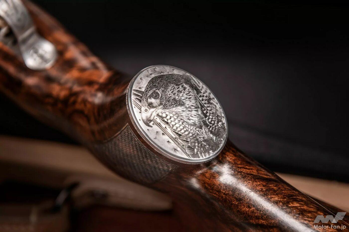 もう一社である、VO Falcon社が手掛けたライフルもすごい。特別な革製ケースに入れられたライフルは、ハヤブサのモチーフと木製の銃身が付いており、これだけでは決して手に入らず、カーレックスの特注G-Falconとパッケージでのみ購入することができる。