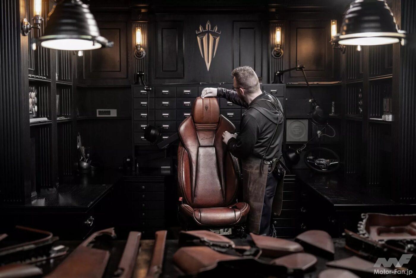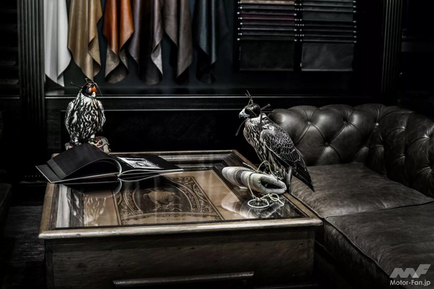 内装では、ダッシュボード、ステアリングホイール、トランスミッショントンネル、シート、ドアパネルが、濃い赤色のレザーで覆われている。ドアとセンターコンソールには手縫いの布製壁画があり、ハヤブサの爪のように見えるよう設計されたカスタムドアロックも装備されている。