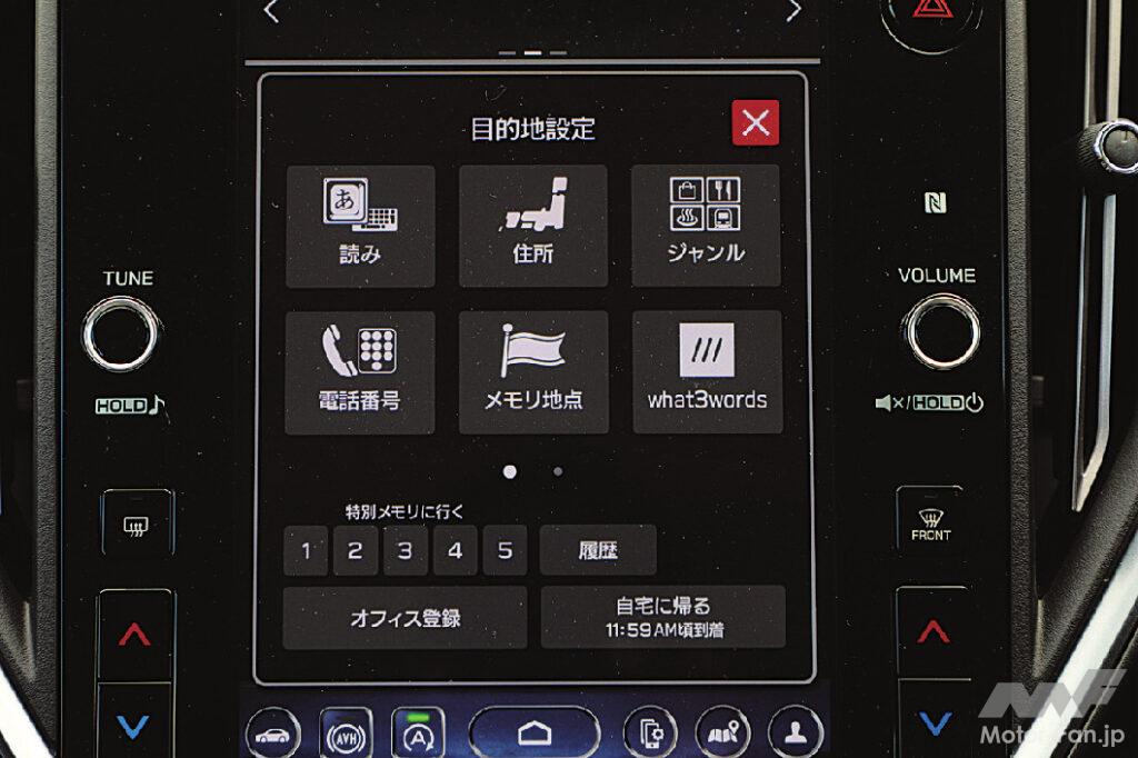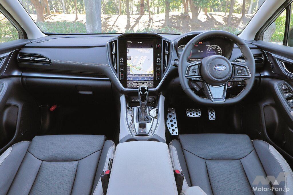 しかしD型レヴォーグ同様、進化したデジタルマルチビューモニター、ハーマンカードンサウンドシステム、リモートエアコン機能を追加したSUBARU STARLINK、Apple CarPlay、地図アプリ情報の表示機能を備えた12.3インチのフル液晶メーター、表示画面を拡張したAndroidAuto対応の11.6インチのセンターインフォメーションディスプレイなどを採用。ちなみに前席シートサイドのサポート部分はレヴォーグより低めに設定。それは着座位置が高まったことへの配慮である。