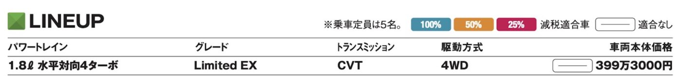最新のD型レヴォーグをクロスオーバー化し、国内専用車としたのがレイバック。レヴォーグとは違い、1.8ℓ DOHC直噴ターボ〝DIT〞+リニアトロニック+AWD、アイサイトXを標準装備する「リミテッドEX」の1グレードのみの展開。専用エクステリアが与えられ、足まわりはスバル最上と言っていい乗り心地を実現したクロストレックのものを採用する(ファルケンのオールシーズンタイヤを含む)。