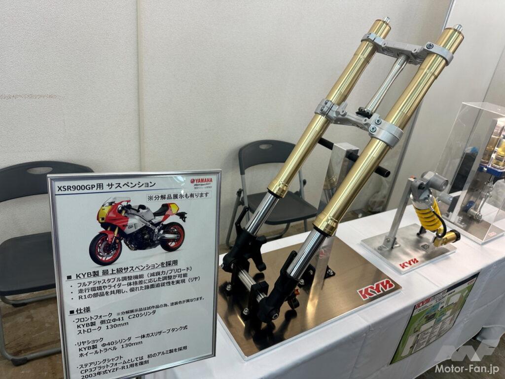その他では、XSR900GPのカラーリングとオマージュとなるレジェンドモデルの並列展示や、初代SR400のカラーリング外装セットの展示。