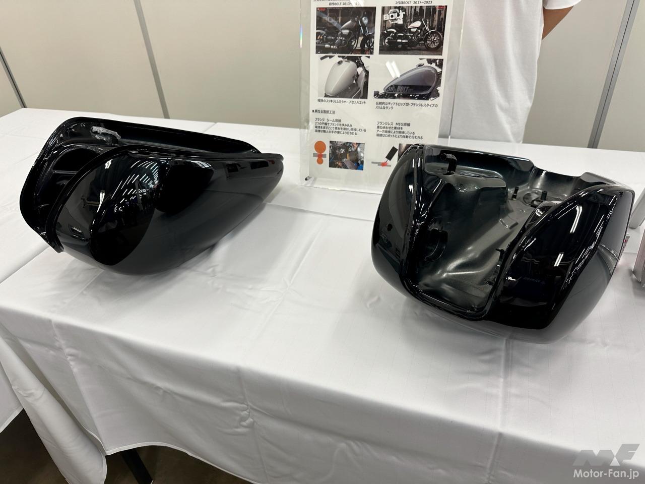 そのように、バイクのガソリンタンクは、バイクのデザインイメージを決定づける重要なファクターである。デザイナーの要望もあり、年々「エッジを効かせた」形状が求められる。けれど、その金属プレス工程で角(カド)を立たせるためには鋭角に金属を曲げることになる。当然、角は薄くなり、漏れの原因になるなど、困難となる。それを研究を重ねることで、数年前には想像できないほどエッジの効いたタンクが実現できるようになったことがわかる。