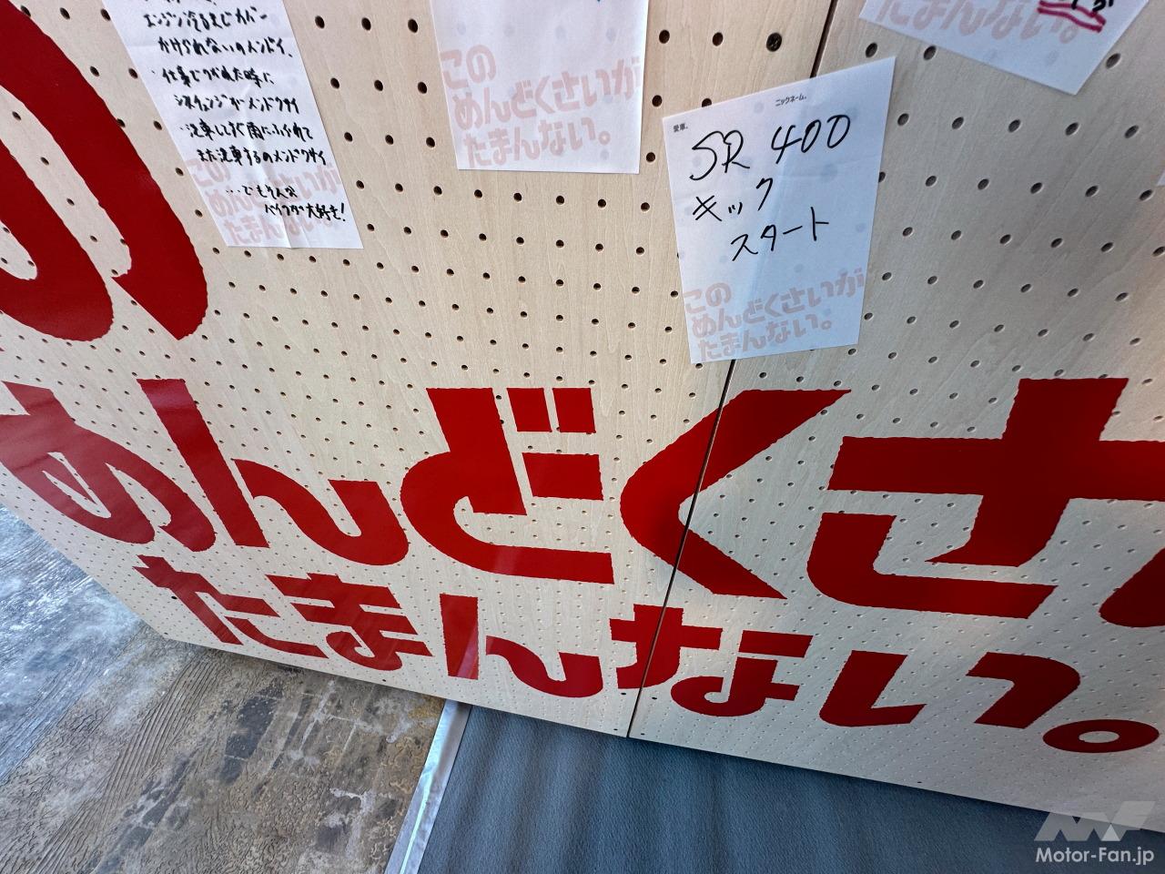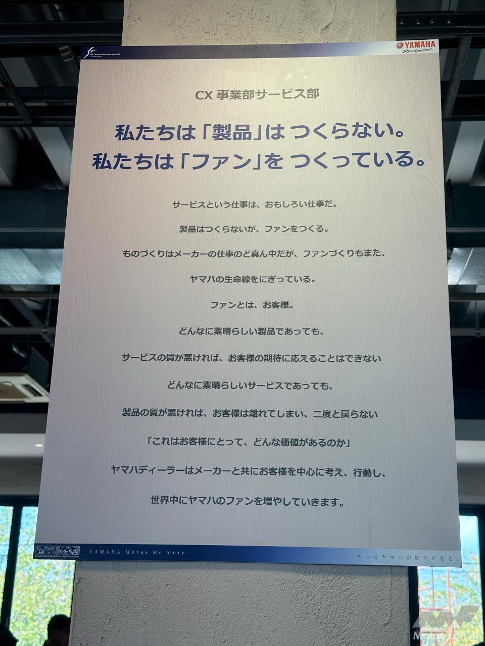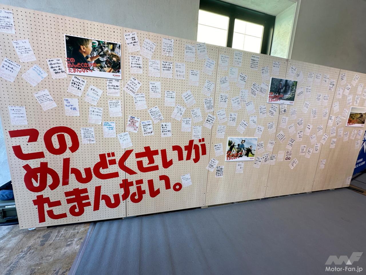 楽器のヤマハ株式会社が「音楽って、めんどくさい。だから、好き」というコピーの元に楽器を演奏して上手くなることの大変さと楽しさを表現したのに習って、ヤマハ発動機でもバイクに乗ることをあえて「めんどくさい」だけどそれが楽しいんだと訴え、ファンとの共感を得ている。ボードには、ライダーたち自身が書き綴った「めんどくささ」がずらり。