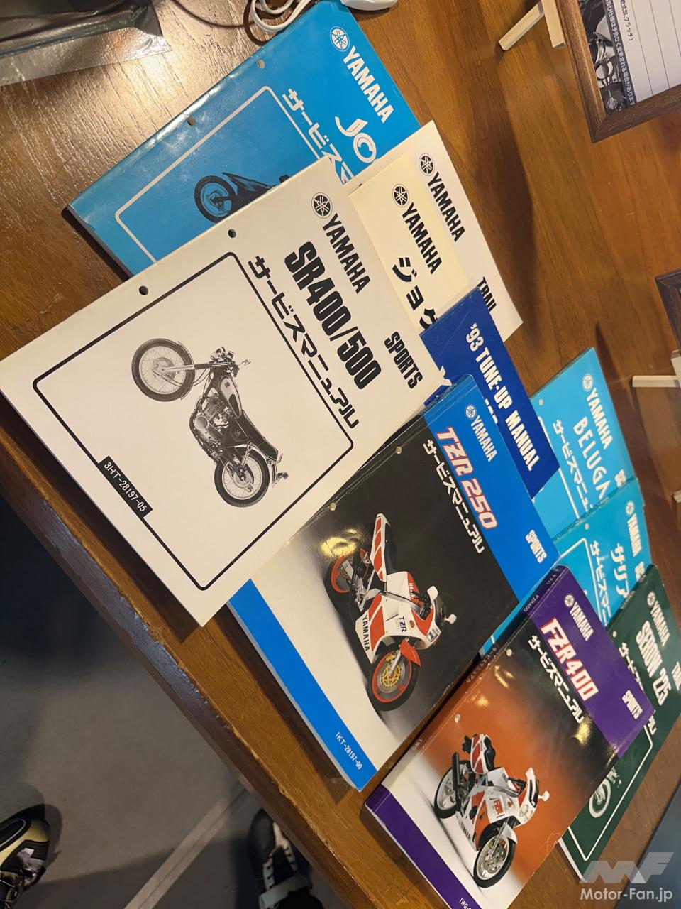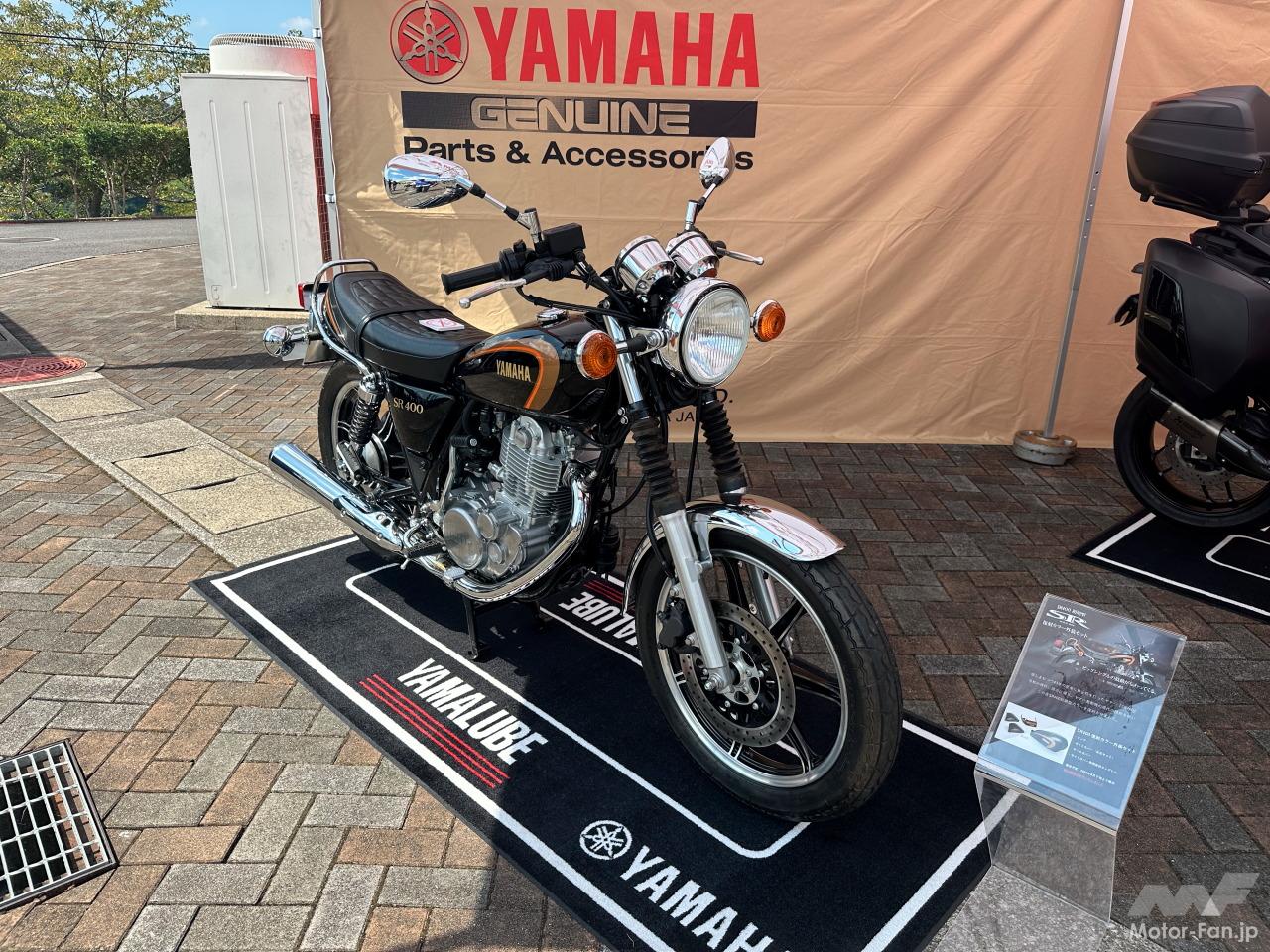 その他では、XSR900GPのカラーリングとオマージュとなるレジェンドモデルの並列展示や、初代SR400のカラーリング外装セットの展示。