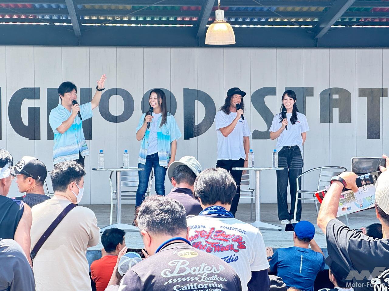 また、屋外のステージでは、元世界選手権MotoGPライダーの中野真矢さん、モデル・タレント・バイク乗りの古澤恵さん、ラリースト・国際A級MXライダー・俳優の風間晋之介さん、バイカーモデル・バイクライフクリエイターのときひろみさんらによるトークショー。