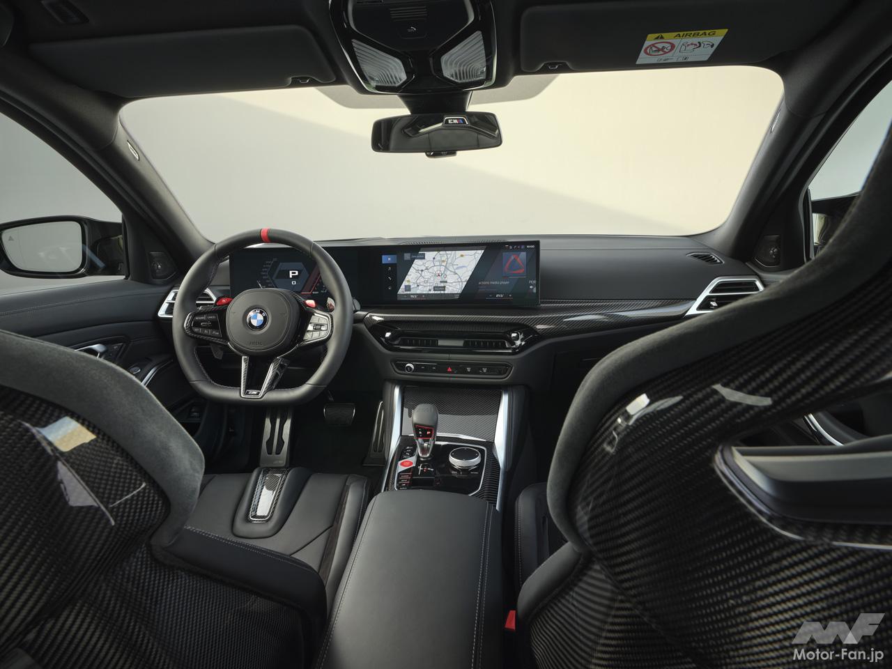 新しいM3/M3ツーリングに搭載する3.0L直列6気筒ツインターボエンジンは、従来より20ps上乗せとなる530psを発揮。8速AT(Mステップトロニック)が組み合わされ、後輪駆動をベースとしたインテリジェント4輪駆動システム「M xDrive」と相まって、圧倒的な運動性能を発揮する。最大トルクの650Nmに変更はない。0-100km/h加速はM3セダンで3.5秒、M3ツーリングで3.6秒をマークする。