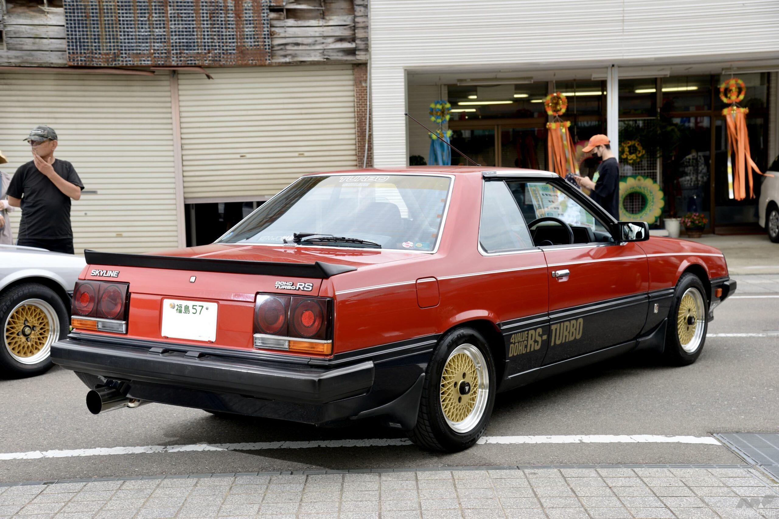 その後ターボRSは’84年にインタークーラーを装備するターボ・インタークーラーRSへ発展する。これによりFJ20E・T型エンジンは205ps/6400rpm、25.0kgm/4400rpmにまで出力・トルクを向上させる。これはライバルがセリカからソアラやセリカXXとなり2.8リッターエンジンを相手にしなければならなかったことも影響している。ほぼ半年ごとに進化を続けたDR30スカイラインだから、当時は買い時がいつなのかを判断するのが難しく仕様変更のたびに頭を抱えるオーナーが続出した。ただ、仕様変更を気にすることなく前期の通称「3本グリル」であるRSをこよなく愛するオーナーがいた。喜多方レトロモーターShowの会場で貴重な二桁ナンバーのRSを見つけ、オーナーである布施慶久さんに声をかけると案の定、新車から乗り続ける1オーナー車だった。