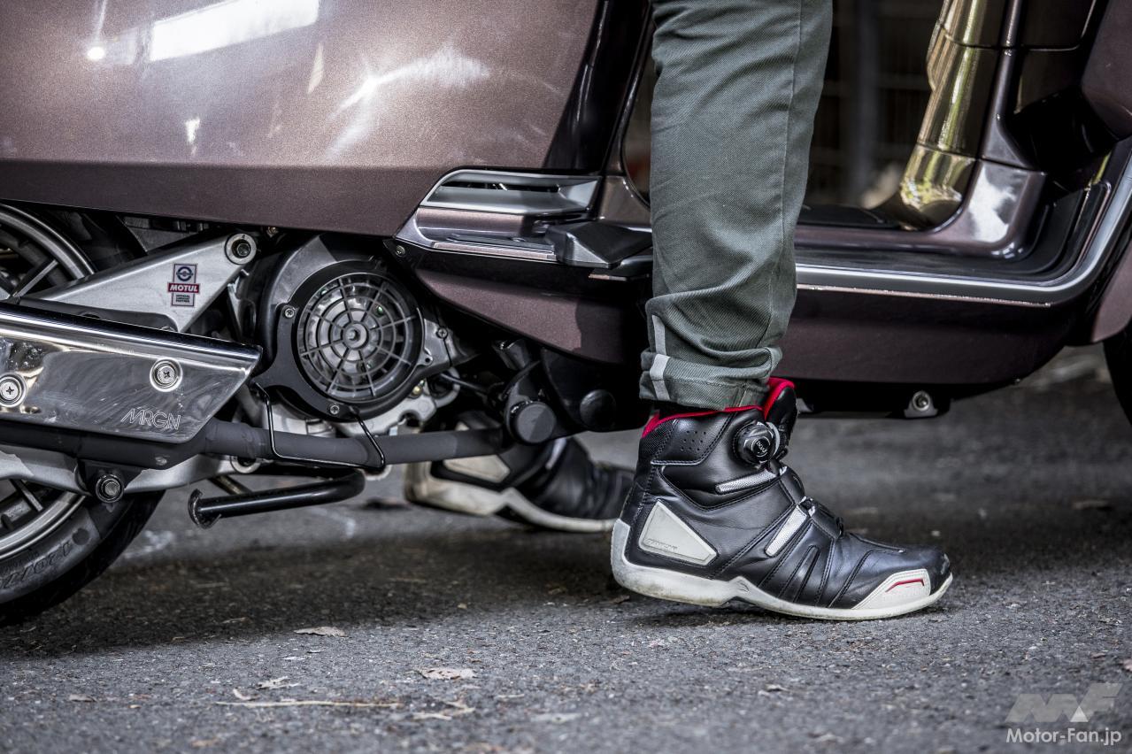 視線の高いゆったりとした乗車姿勢で、フラットな足もとも自由度があります。シートはクッション厚が薄めですが、コシがあって座り心地は良好。770mmのシート高で、身長175cmの筆者が両足を下ろすとカカトが浮きます。シートが高いのではなく、座面が広く幅があるからで、座ったときにはそれがゆとりを感じさせます。