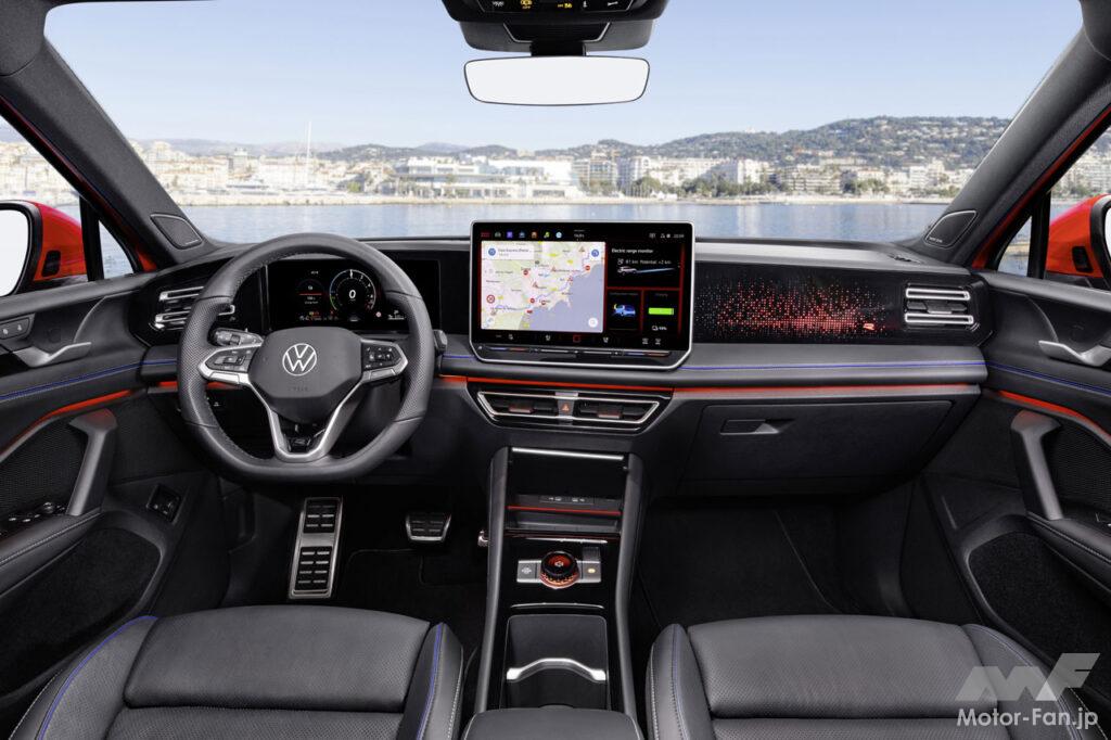 パワートレインは、ティグアン初の気筒休止機構と48Vマイルドハイブリッド機構を備える1.5L直列4気筒ガソリンエンジン(150ps/250Nm)を積む前輪駆動モデル eTSIのほか、日本でも人気の高い2.0L直列4気筒ディーゼルエンジン(193ps/400Nm)にフルタイム4WDシステムを組み合わせた TDI 4MOTIONが導入される。