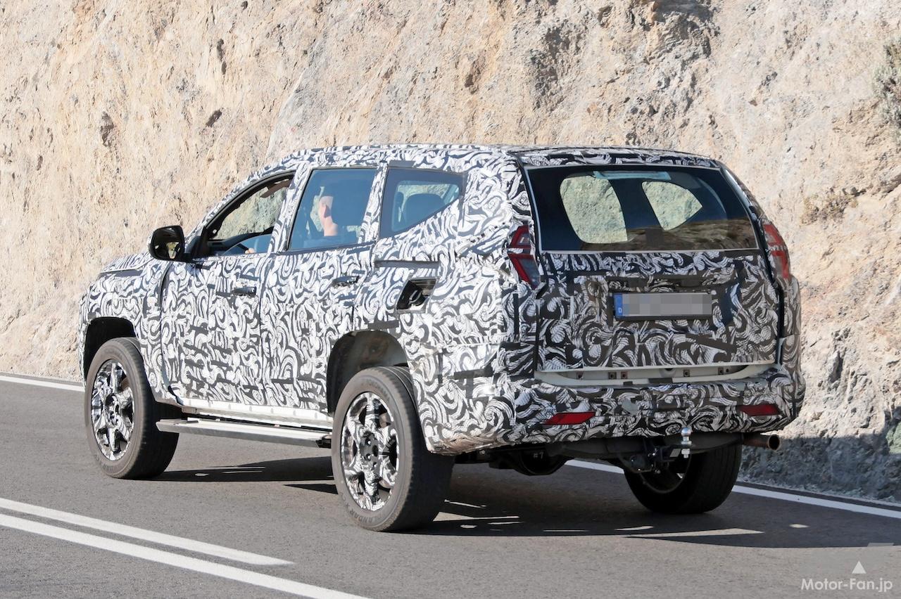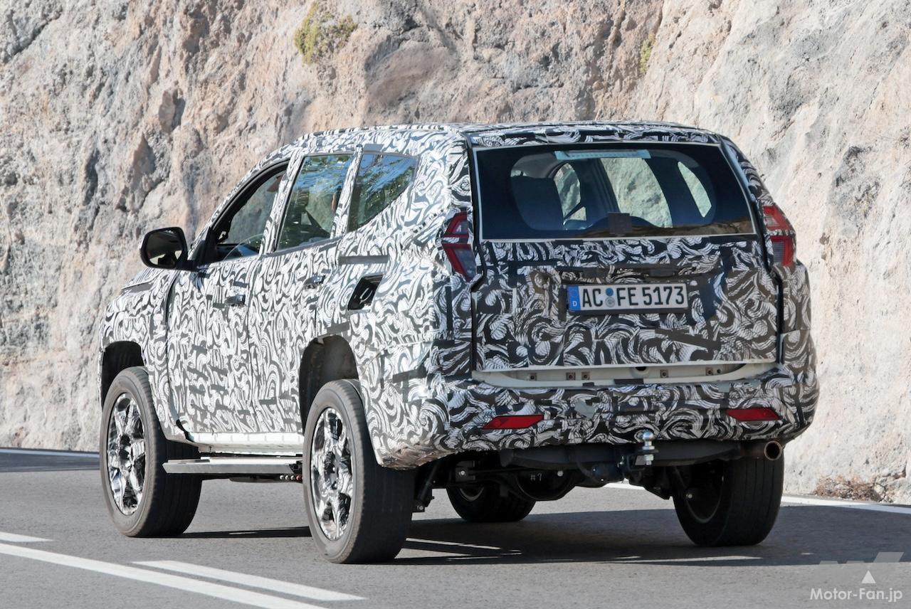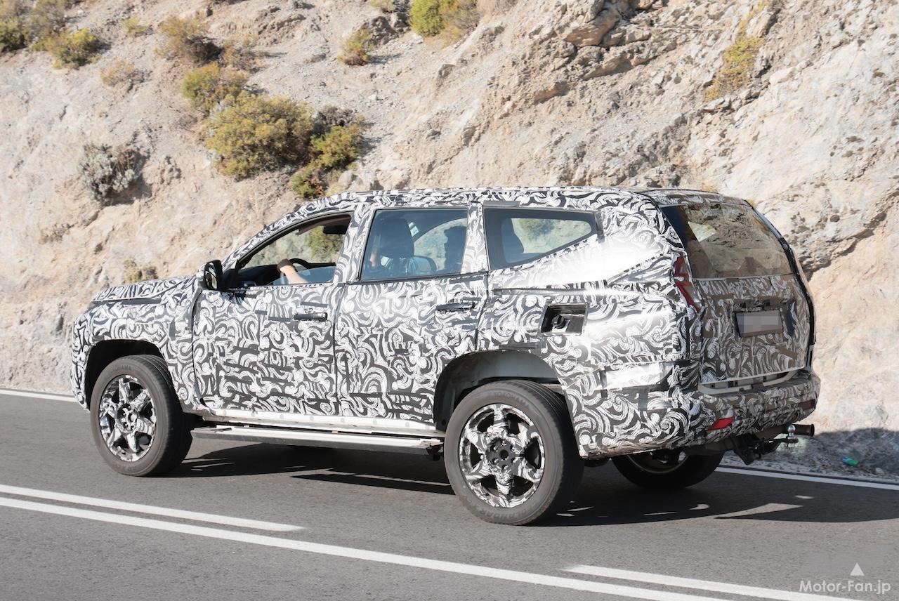 このたび捉えたプロトタイプは、現行コンポーネントをところどころに使用している次期パジェロスポーツのテストミュールと思われる。