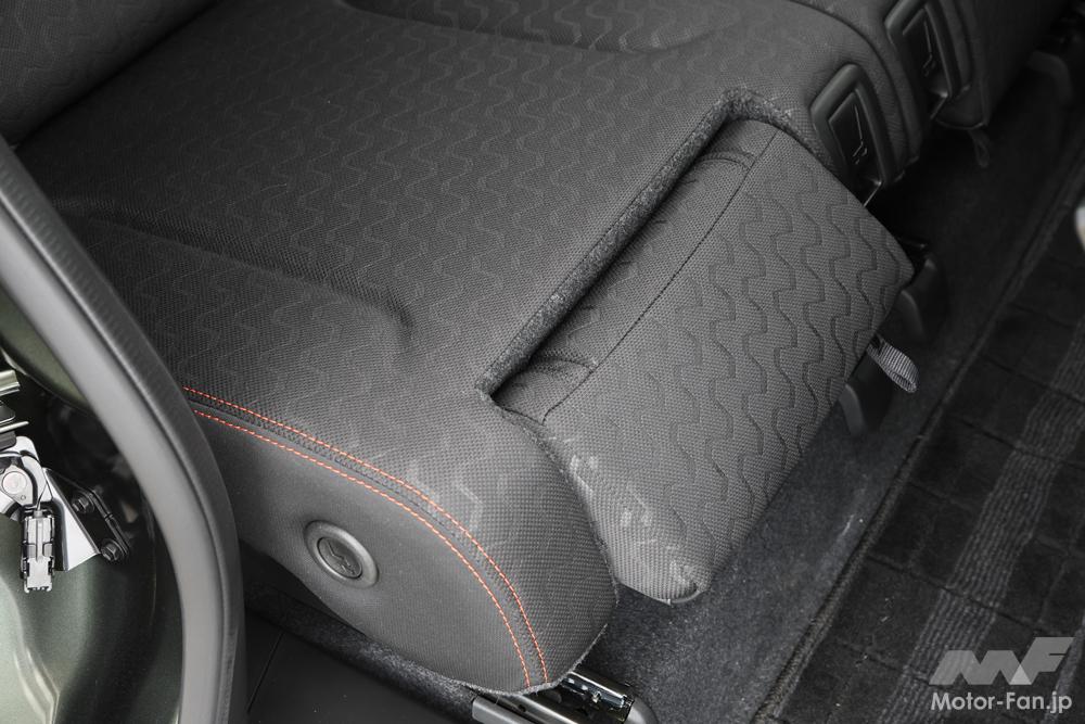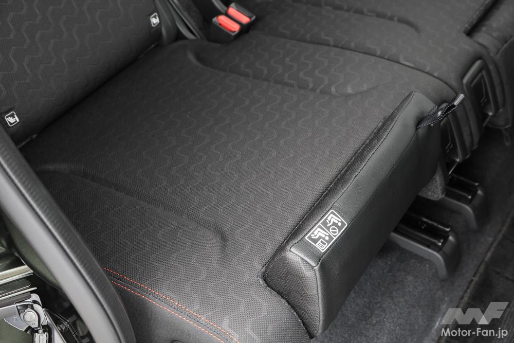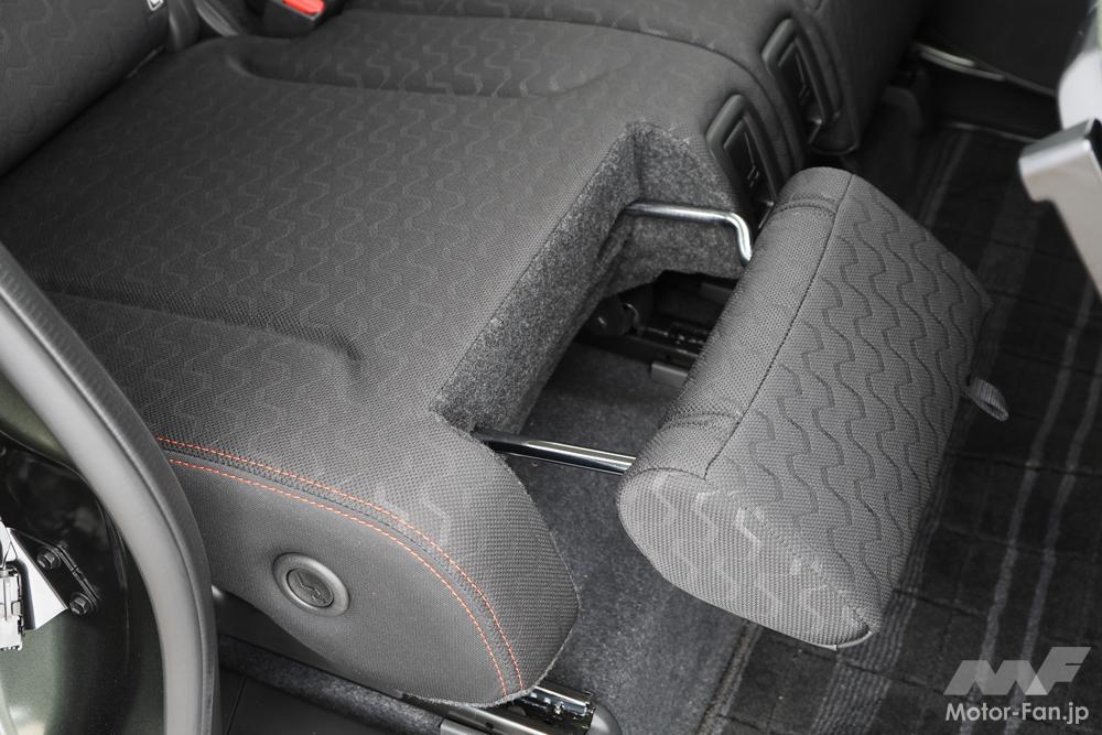 「マルチユースフラップ」は、スペーシアでスズキ初。写真は「オットマンモード」。
