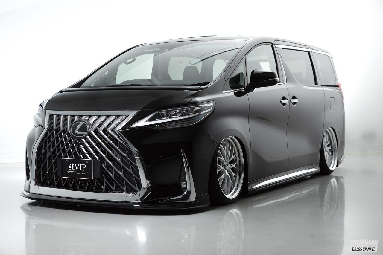 ベース車はアルファードなので、車高調キットやエアサスなどのローダウンパーツは選択肢が豊富。ホイールも大小様々なサイズが選べる。
