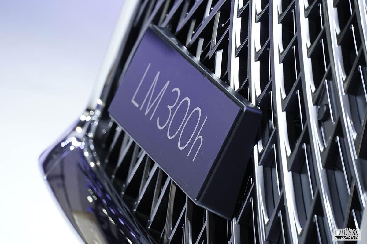アルファードに比べ全長が長いレクサスLM。実際ボンネットが長く、フロントバンパーの位置も若干前方向へ伸びている。それでも各パーツを固定するステーやネジ穴を共有できるので、取り付けに問題はなし。ただしアルファードの純正グリルを固定しているピンの数が膨大。ひとつずつ外す作業がもっともきつかったとのこと。